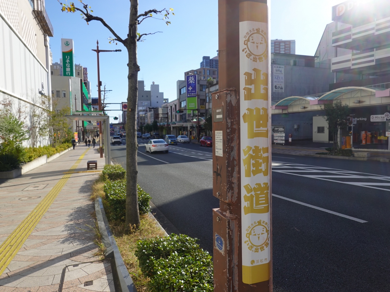 JR浜松駅から「出世城」の異名を持つ浜松城までの道が「浜松出世街道」と名付けられています。途中でルートが分かれ、一本道ということではないようです。随所にマスコットキャラ「出世大名家康くん」の姿などが現れ、散策が楽しいです。歴史街道的な見どころよりも、街中に散りばめられたキャラクターやデコレーションが楽しく感じられました。