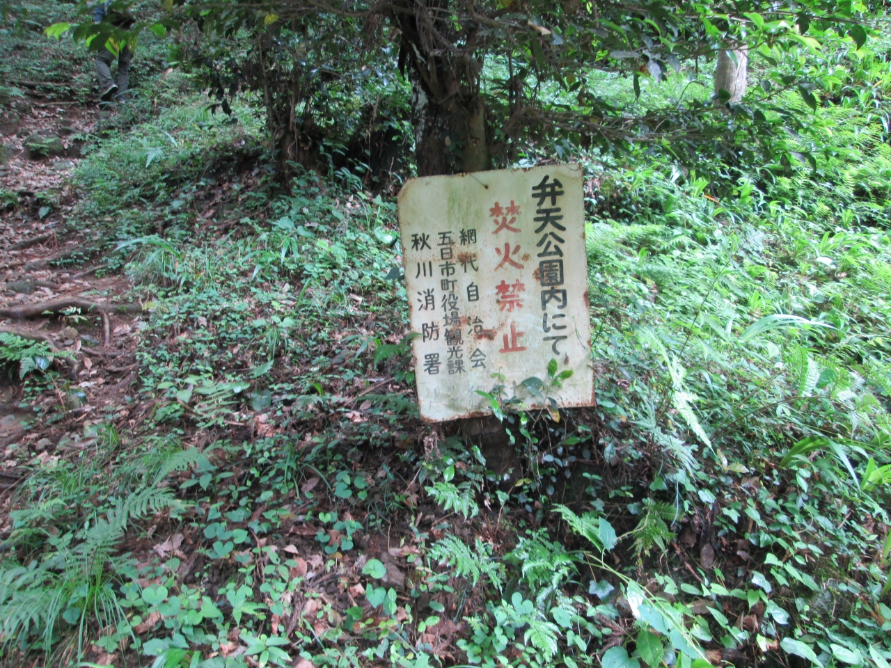 JR五日市線武蔵増戸駅下車、徒歩50分で網代会館の公衆トイレに着きます。ここから山道のハイキングコースに入ります。公園を示す標識はありません。標識はコースの途中一か所ありました。貴志島神社の鳥居、拝殿神楽殿、弁天洞窟(神社の奥之院にあたる)を見て、30分ほどで弁天山山頂(標高292.3M)に到着。東が開け、遠くに西武ドームが見えます。公園というより、ハイキングコースという感がします。途中ミツバツツジや桜の木が多く見られたので、4月の花の季節には再度訪れてみたいものです。この後網代城山を通り武蔵五日市駅に向かうコースは年配者には適したハイキングコースです。