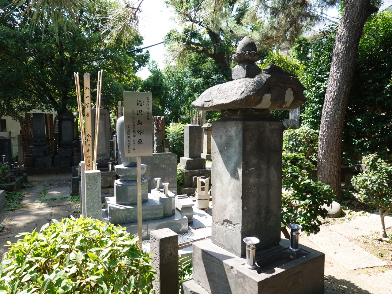 江戸時代後期に活躍した戯作者、滝沢馬琴の墓が茗荷坂沿いの深光寺にあります。墓地はそれほど広くないことに加え、馬琴の墓のすぐ脇にはステンレス製の案内板があるので、すぐにそれと分かりました。やや傷んだ墓石がその歴史を語っているようでした。