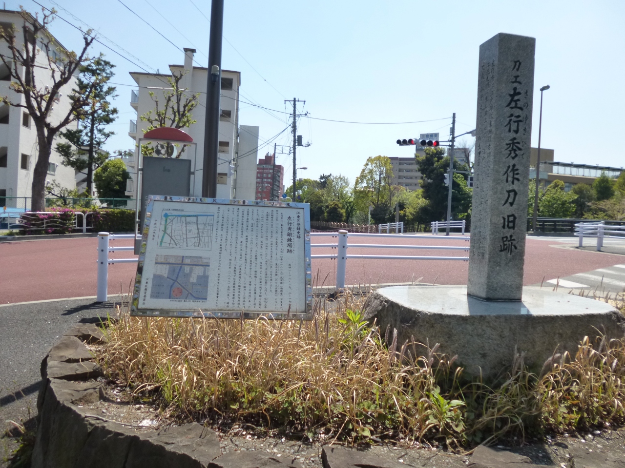 住吉駅から徒歩10分ほど、小名木川に架かる小名木川クローバー橋の南側の橋、三島橋の東詰に碑があります。ここは、幕末の有名な刀鍛冶・左行秀ゆかりの地だそうです。当時この付近にあった土佐藩下屋敷に滞在し、鍛錬場を築き刀剣を製造していたそうです。鋼を熱しては打ち火花飛び散るあの日本刀鍛錬がここで行われていたようですが、今は面影はありません。