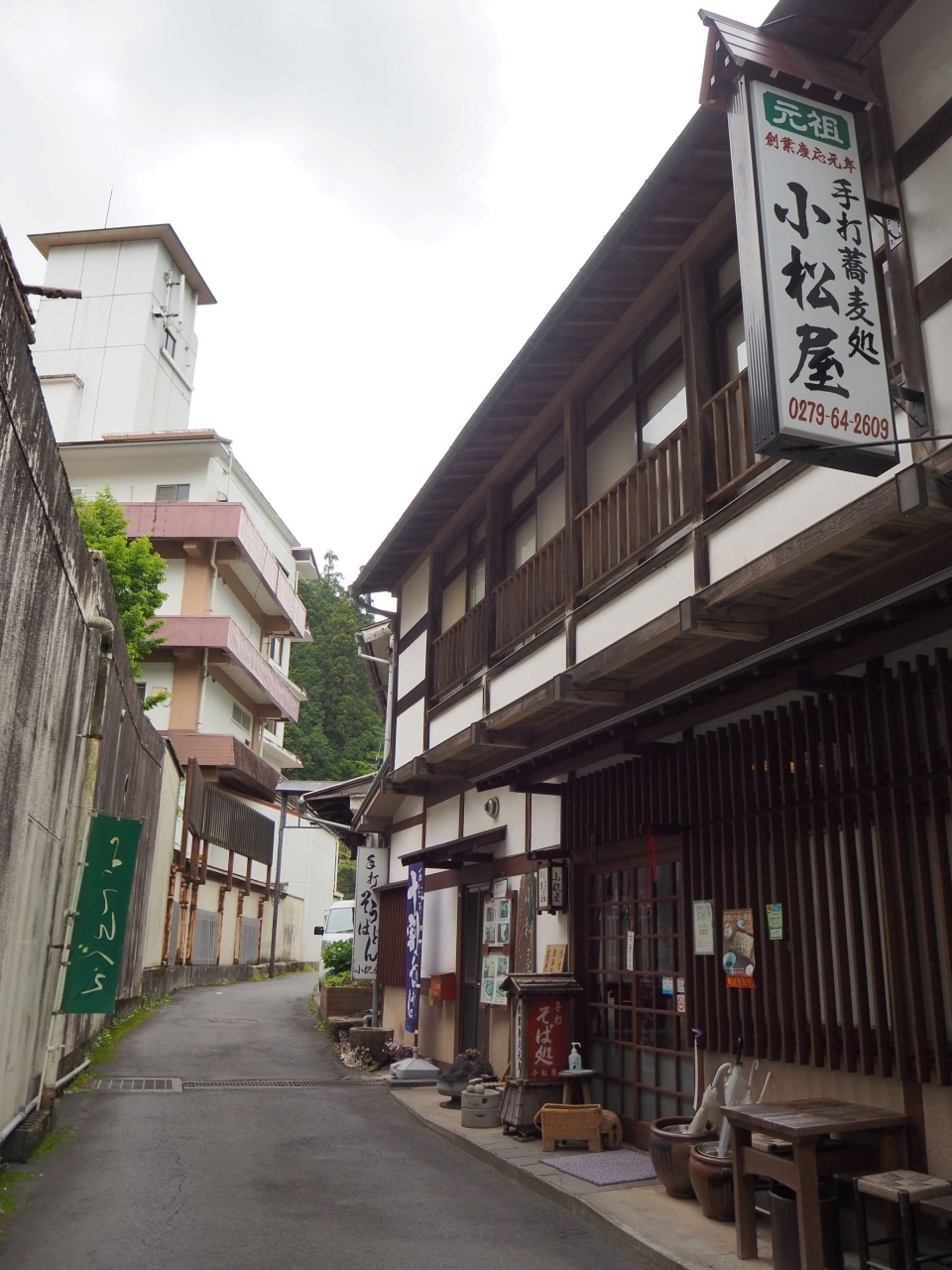 古くからある温泉だが、周辺で活気のある伊香保や草津に比べると、だいぶ人が少なく、閉まっている店も多くて少し寂しい印象でした。逆に言えば、混雑を避けて静かに過ごし温泉を楽しむのには良い所。昭和な温泉街のところどころお洒落なカフェなどがあり、くつろげました。