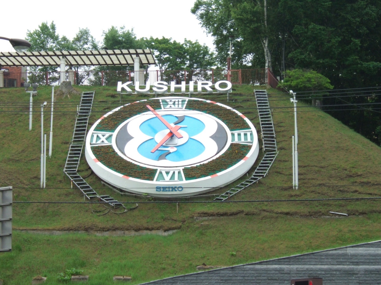 釧路駅から北大通をまっすぐ歩いていくと、幣舞橋を渡った先の斜面にある大きな花時計。