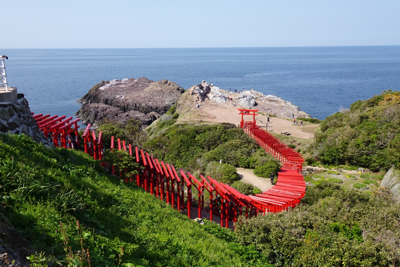日本海に突き出た岩場に、沢山の真っ赤な鳥居が列を作って並んでいるさまは絶景としか言いようがありません。地元の方々の神社ですが、今や有名スポット過ぎて、地元の方々総出で神社を観光地としても支えているようでした。駐車場も整備されていますが、観光バスまで乗り入れて混雑しています。国道から細い山道を走ってやっと着く感じで、秘境感もありますが、人が多いのにゲンナリな感じもあります。改めて早朝に行きましたら、絶景独り占め状態で、感動は倍増でした。