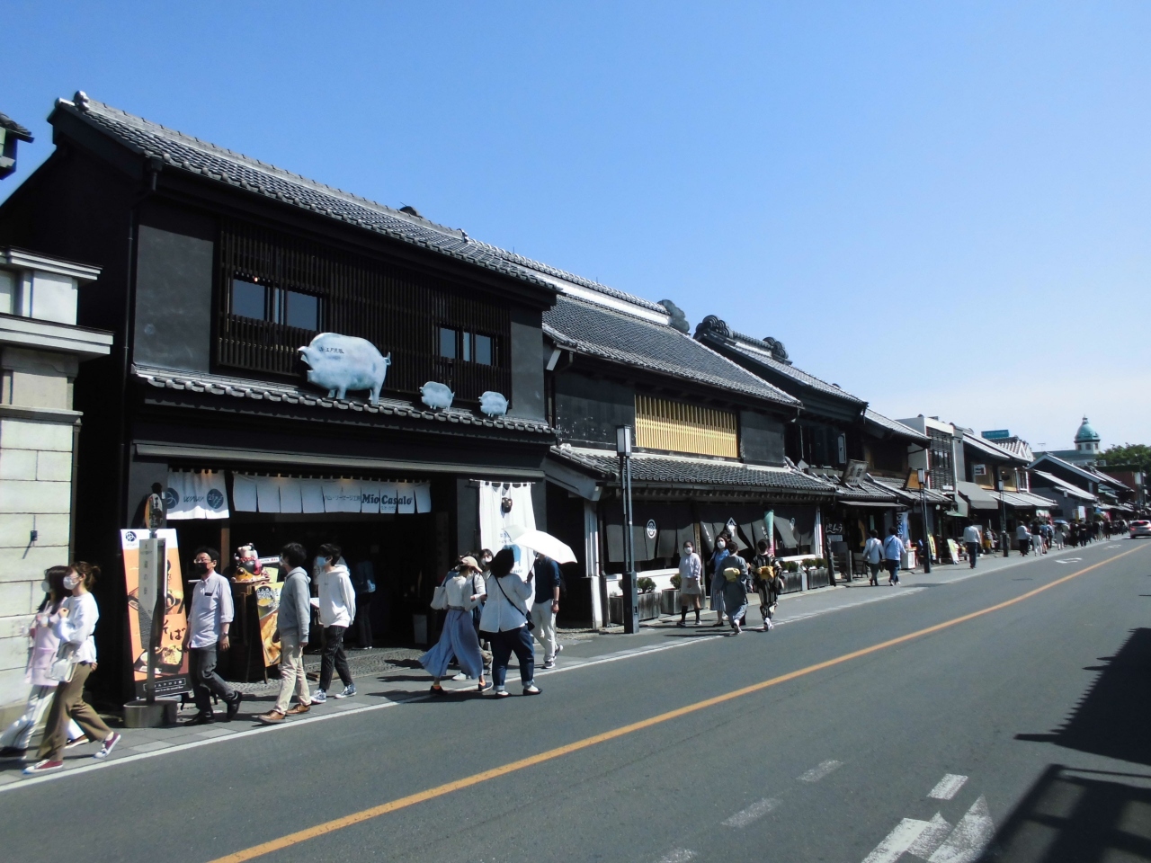蔵の街並みの建物の一つです。周りの建物と同じで黒壁が特徴的でしたが、窓の部分も特徴的でした。黒一色の中で気の色が鮮やかに映えていたからです。周りと同化しているだけでなくしっかりと意志を持つかのようなたたずまいでした。