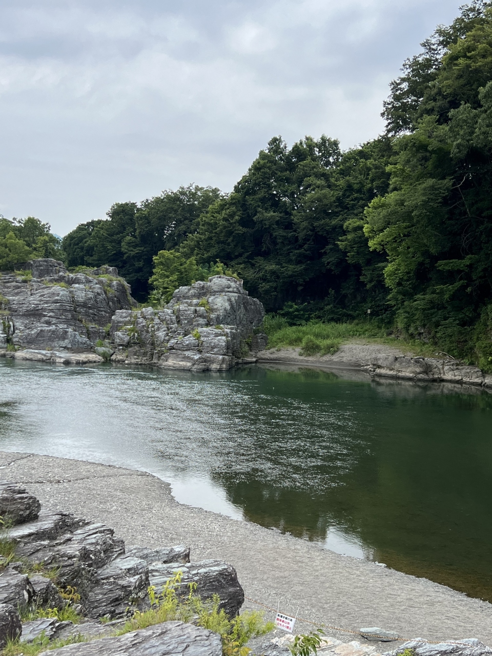 地名「瀞」のとおり、穏やかな流れの荒川を眺めながら、大きな重ねあった岩の上を歩きます。