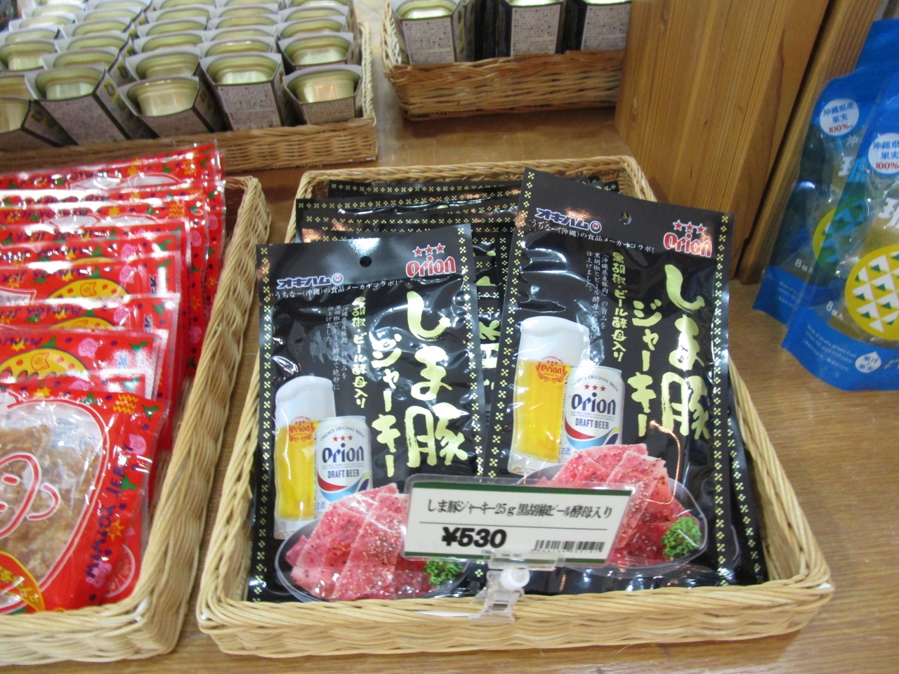沖縄県内随一のやんばる(沖縄県北部地域)商品をそろえたお土産店で、地元本部町産コーナーや美ら海水族館グッズなどもそろっていました。