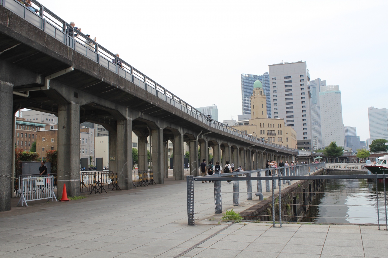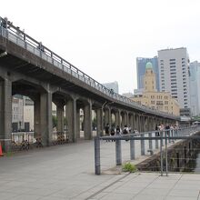 旧臨港貨物線の鉄道高架橋を利用しています。