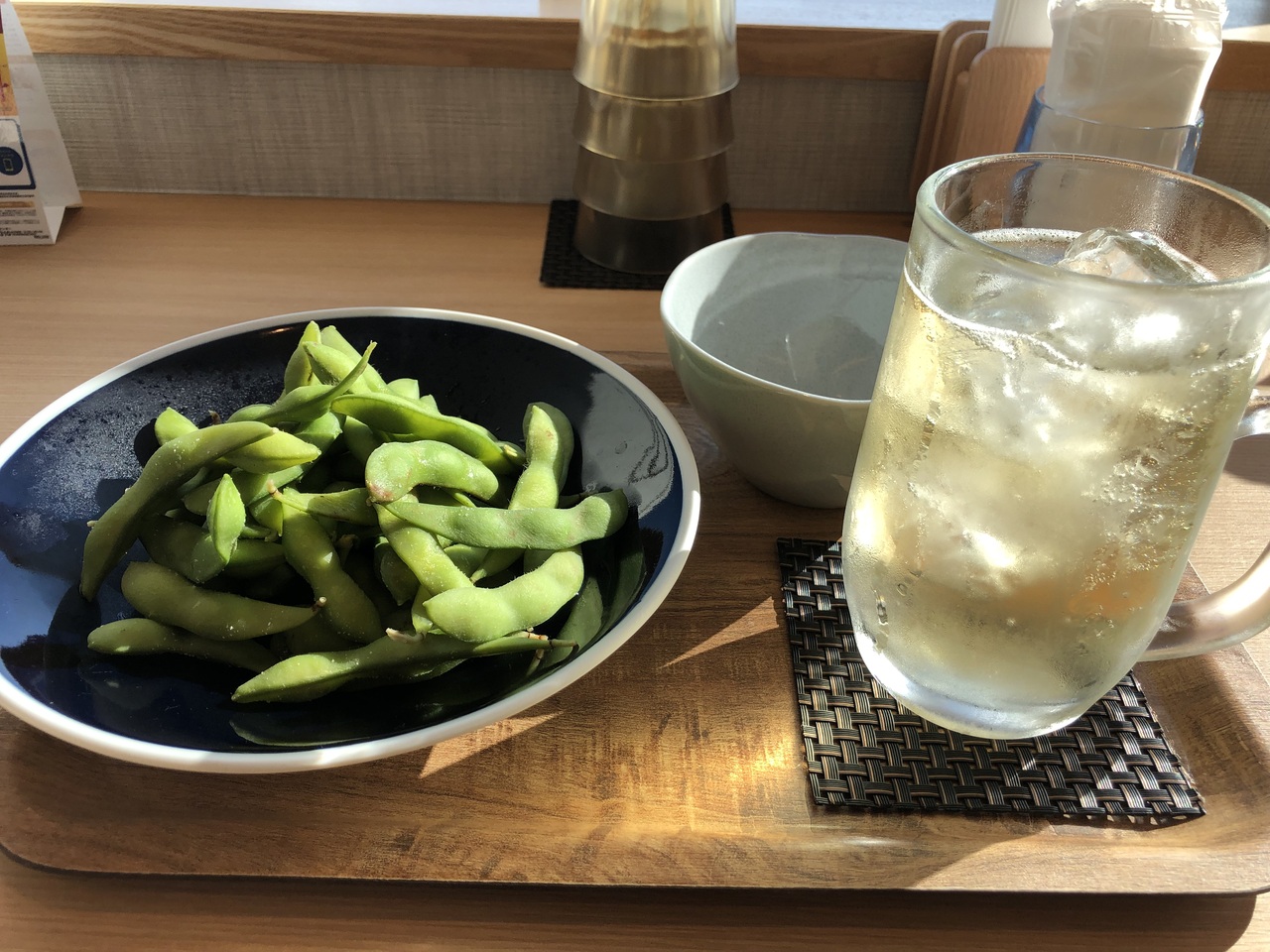 中にあるレストランのお食事処 泉天空は川を下にのぞめる景色が最高です。枝豆税込500円とハイボール税込800円を食べました。