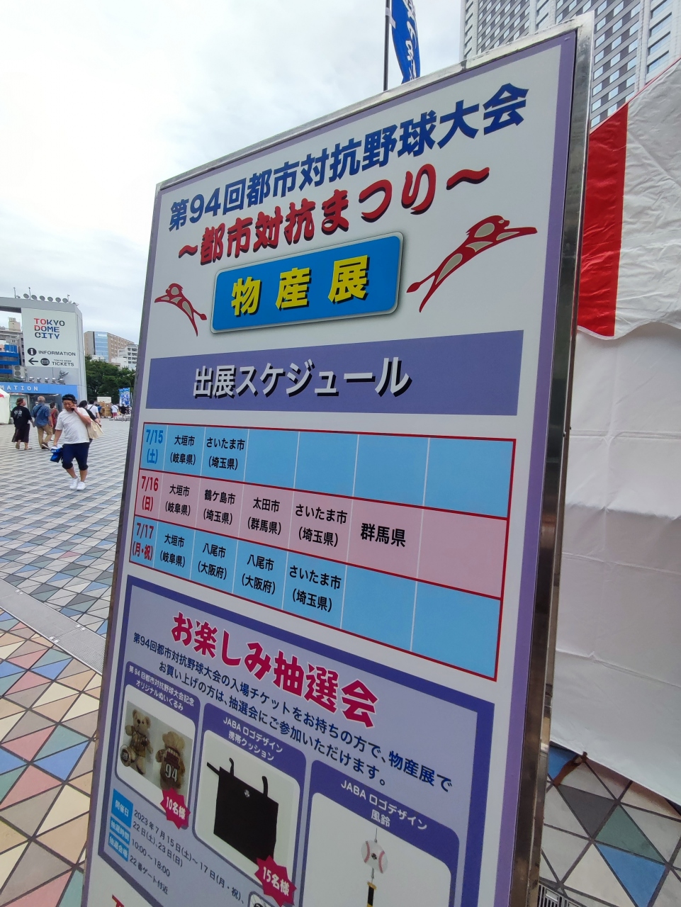 東京ドームは多くのイベントが開催されますが、7月の12日間で都市対抗野球が開催されます。全国各地から集まる物産展も開催されます。