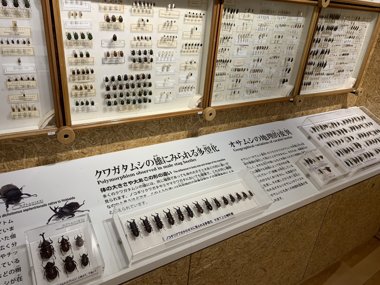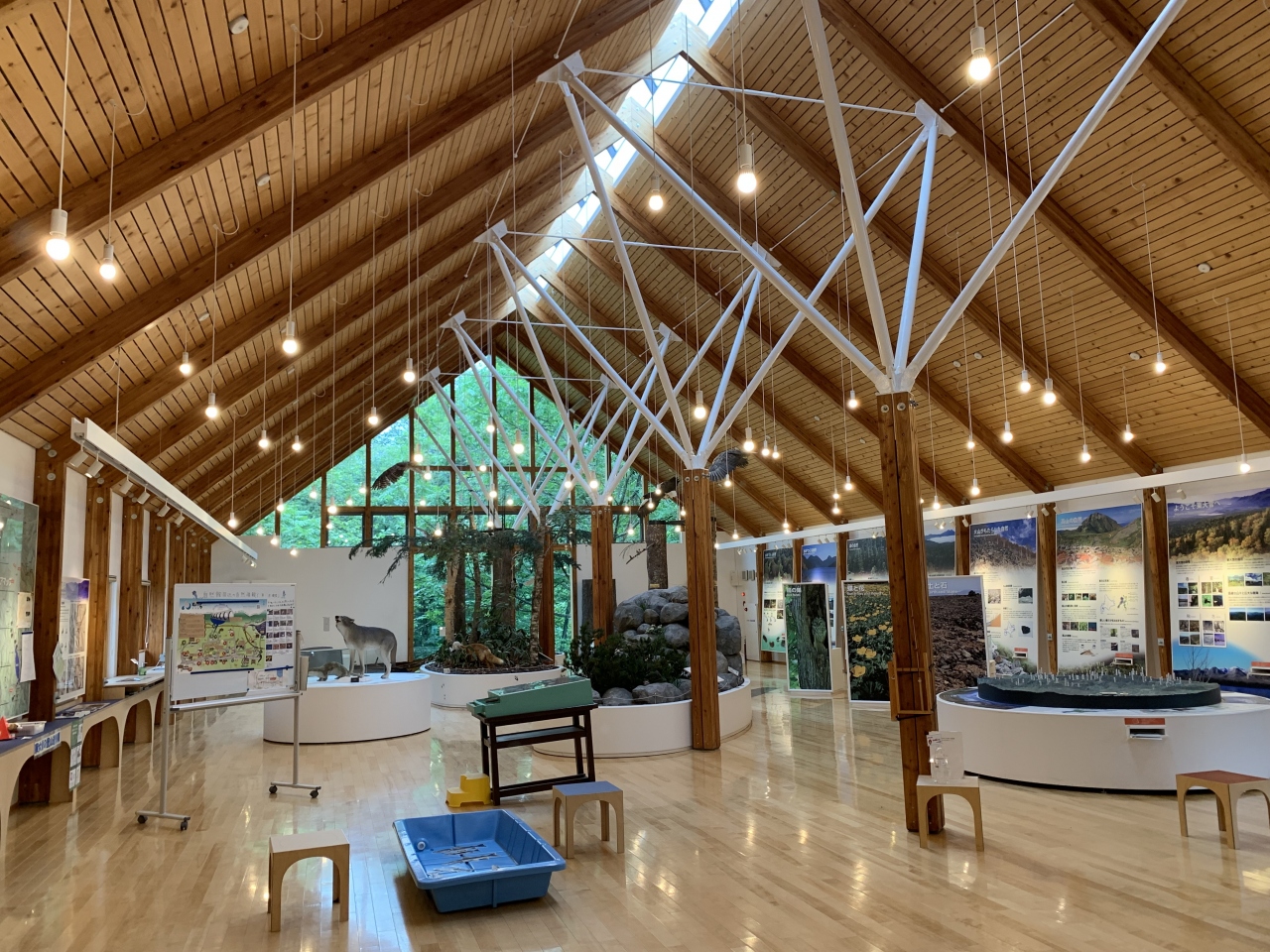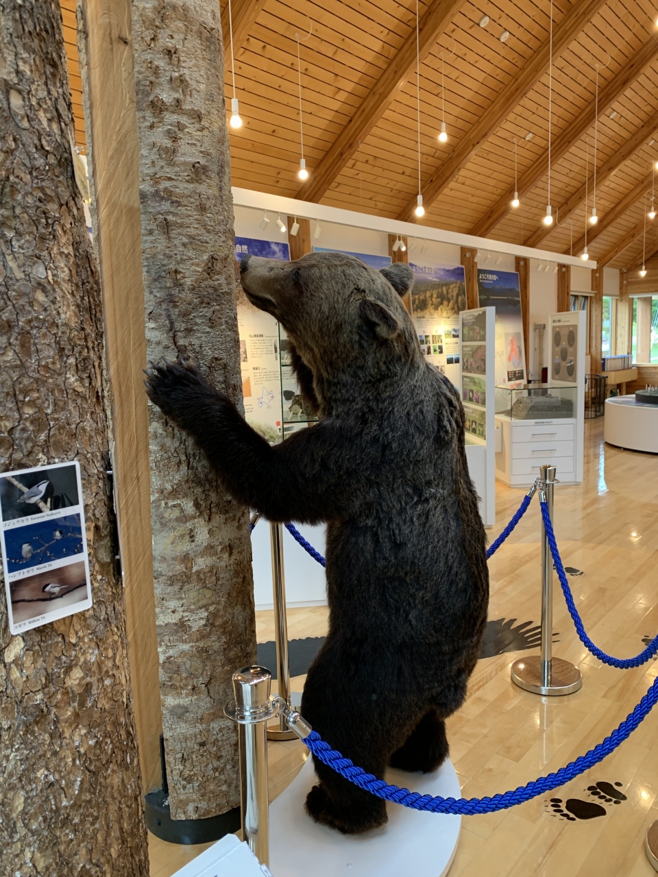 この館は、”ぬかびら源泉郷ビジターセンター”と”ひがし大雪博物資料館”で構成されています。結構立派で新しそうできれいな木造建築物です。動植物や昆虫などかなり詳細な展示でした。ここでは大雪山国立公園及び東大雪地域の色んな生き物や自然について知ることができます。また、タウシュベツ川橋梁の情報も得ることができます(2021年は7月17日に完全水没でした)。