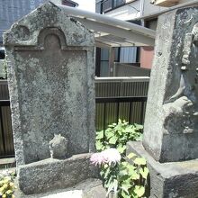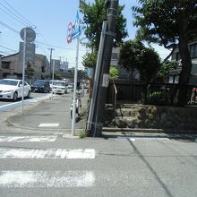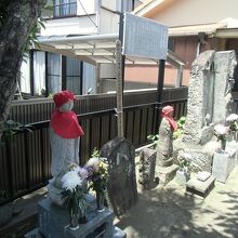 バス通り沿いの一角に地蔵や石碑が並んだエリアがあり、そこに説明板もあります。