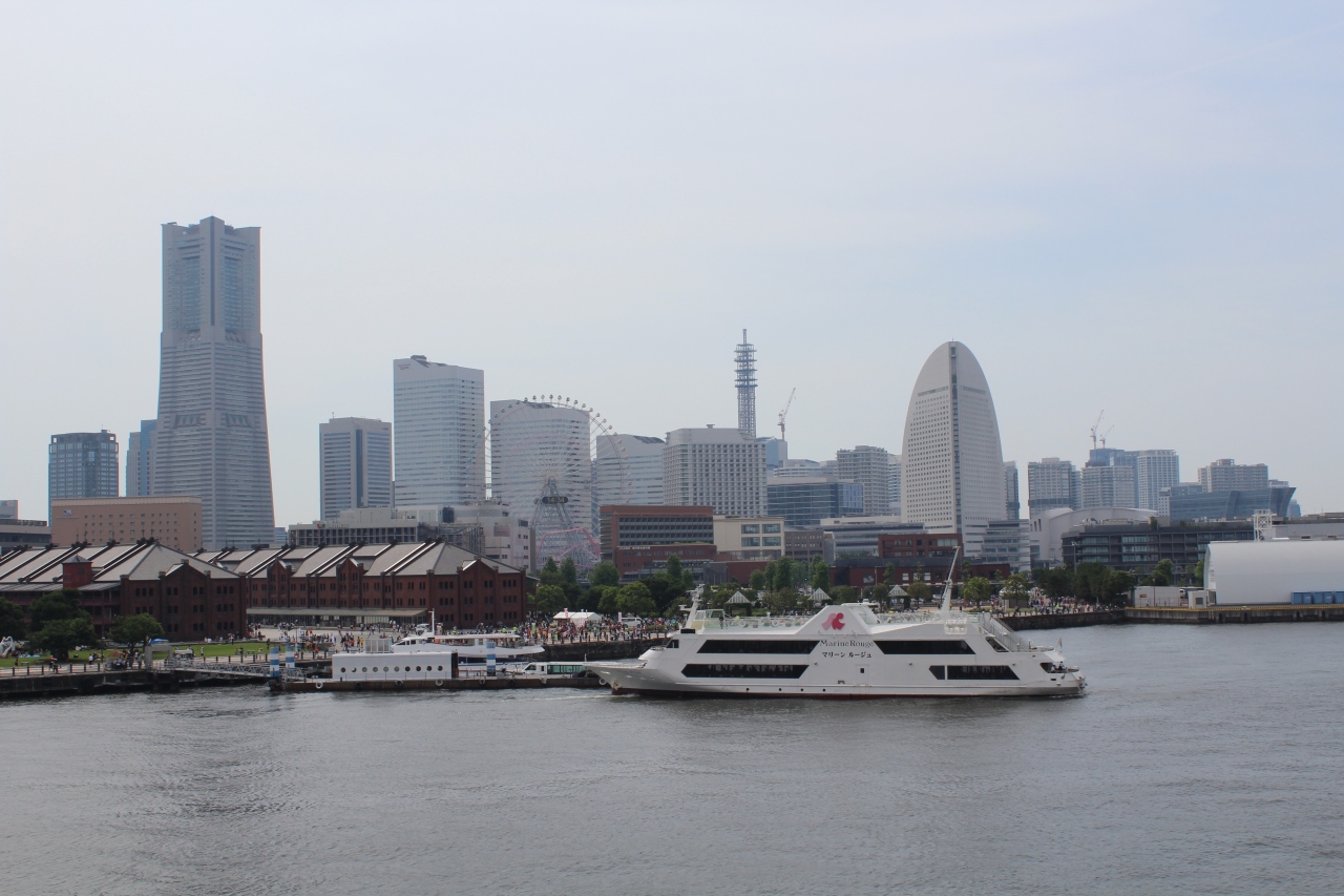 防波堤からみなとみらいや赤レンガ倉庫が良く見えます。