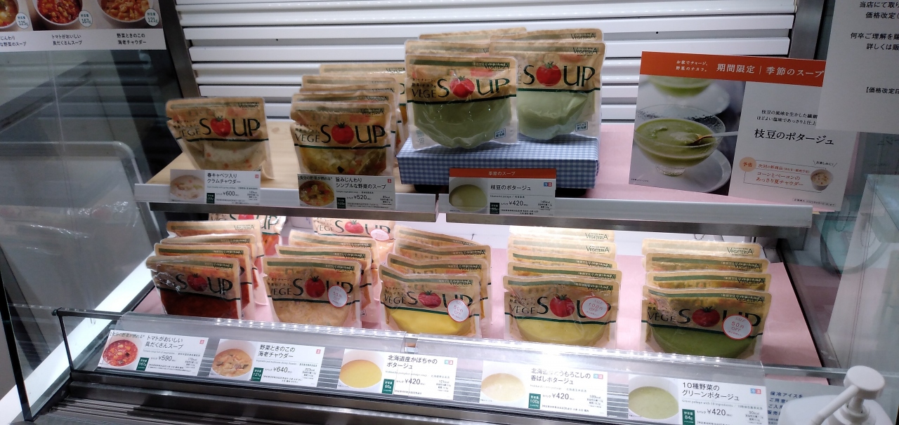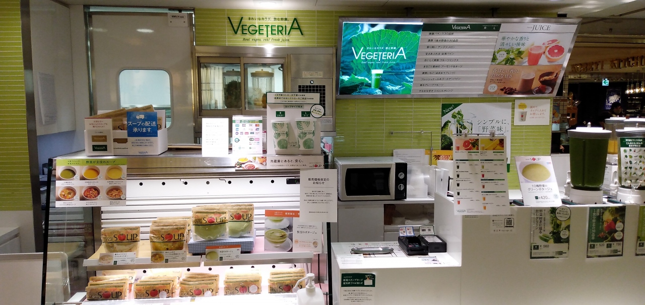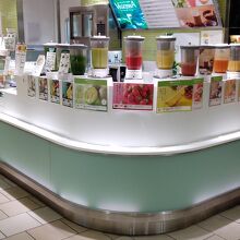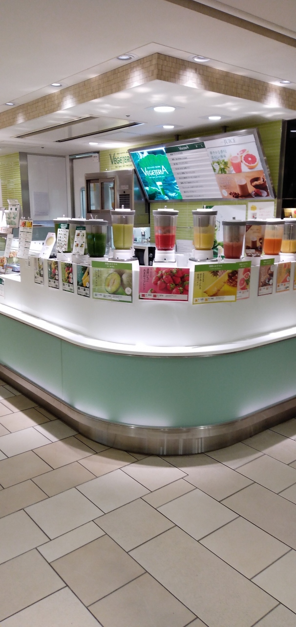 駅直結のアトレ内のお店。4人程度座れるベンチシートがあります。説明込みの商品名で選びやすいメニュー。”野菜好きに贈る飲むグリーン”をいただきました。注文を受けてから作るフレッシュジュース。野菜そのものが液状で摂取出来ます。
