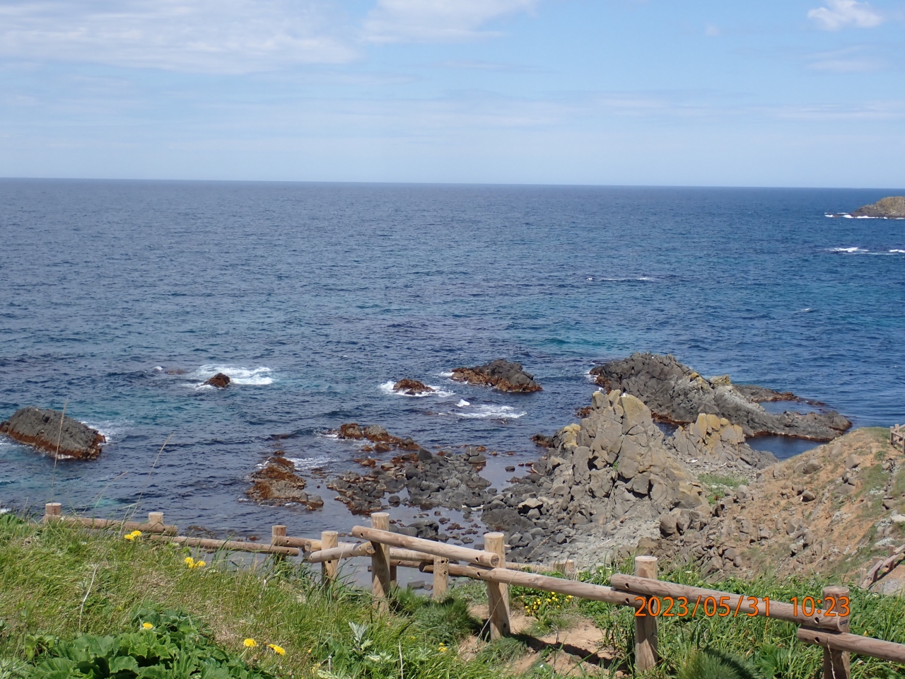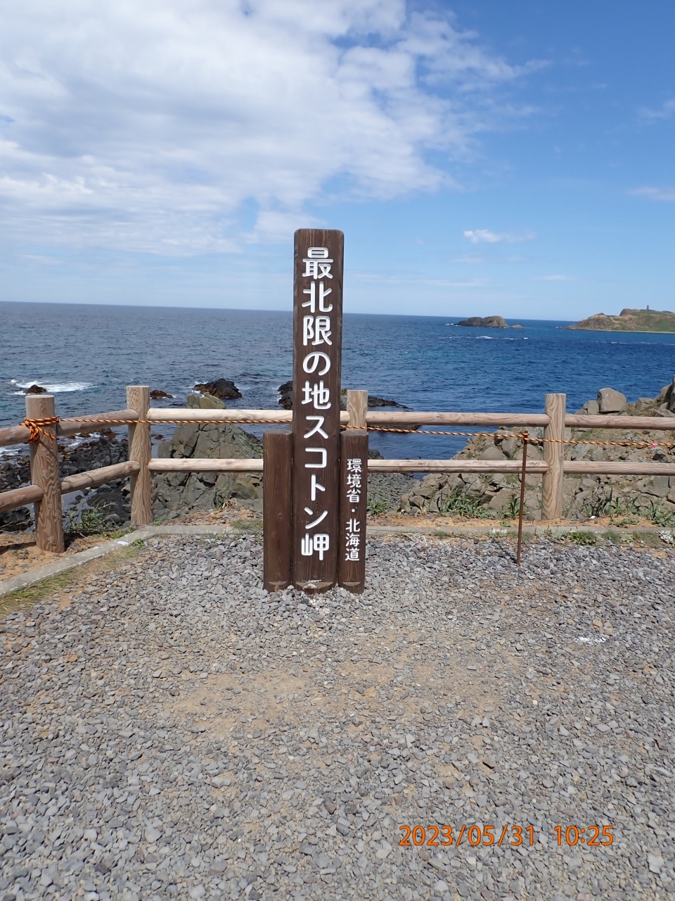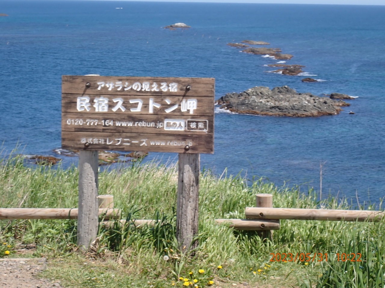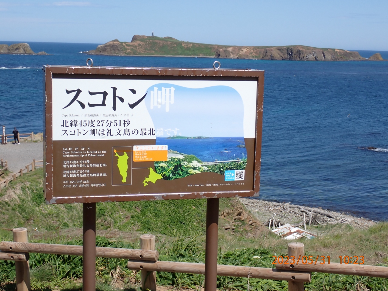 礼文島観光で立ち寄りました。スコトン岬は、礼文島最北端の地で、お天気が良く目の前に無人島のトド島(海鱸島)が見えてました。岬の名前スコトンは、アイヌ語のスーコタン(夏の集落という意味)に由来するそうで、「須古頓岬」と漢字で表記されることもあるそうです。
