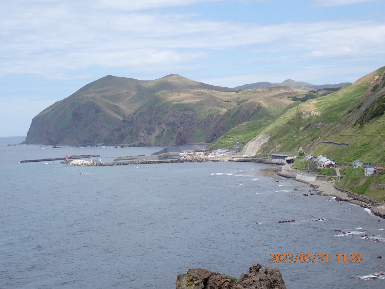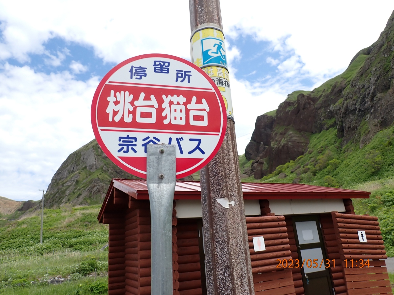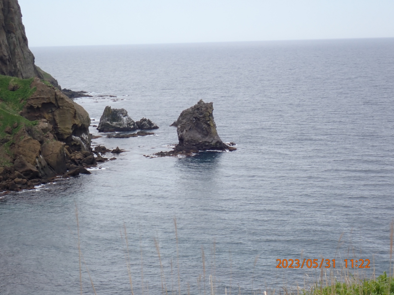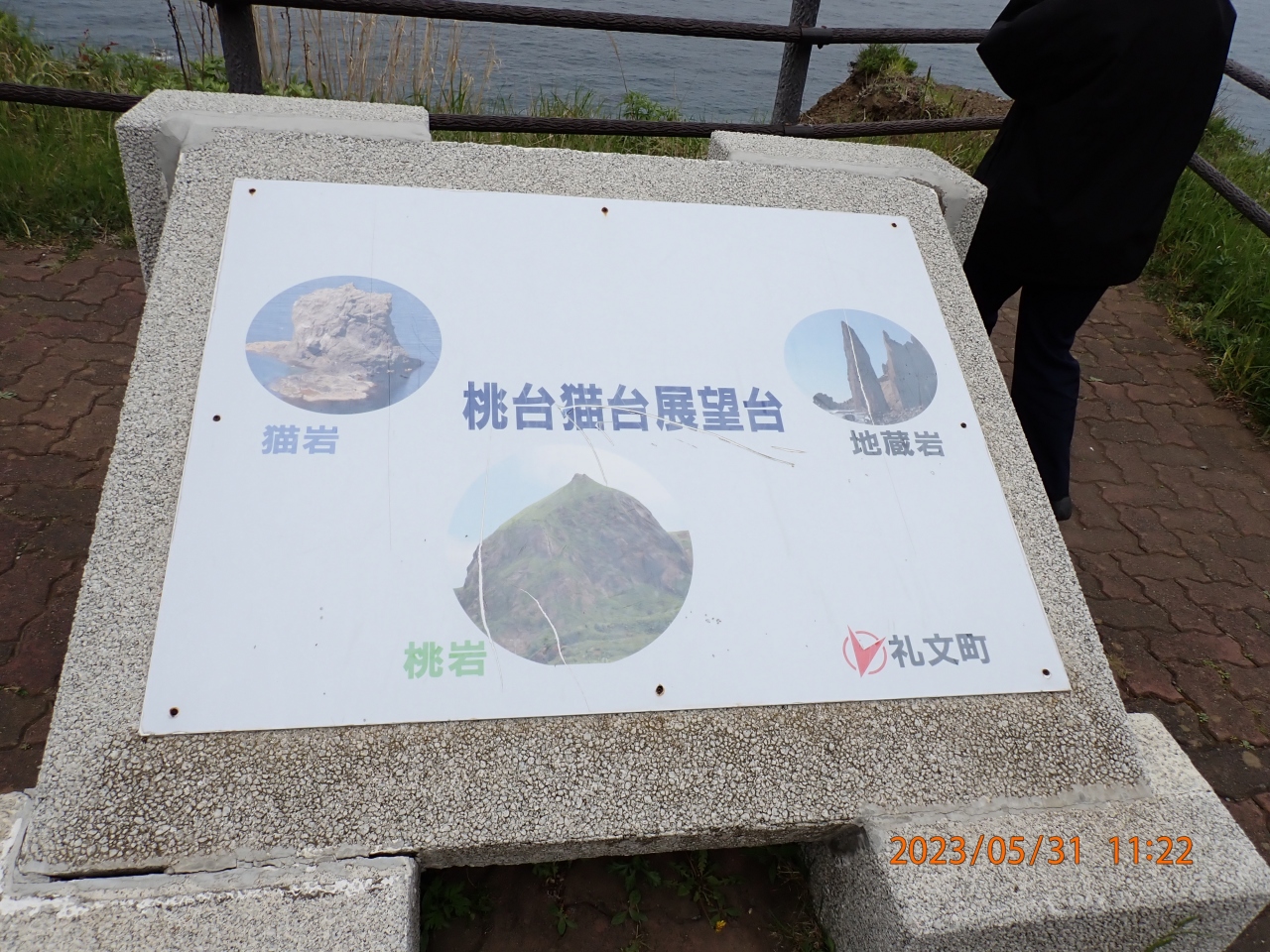 礼文島観光で立ち寄りました。桃台猫台は、礼文島の西側で、桃岩と猫岩を一度に見ることが出来ました。礼文島の島の周囲の道路は繋がっていないので、新桃岩トンネルを通って、島の西側に移動したところにあります。遠景になりますが、地蔵岩や元地海岸も眺められます。