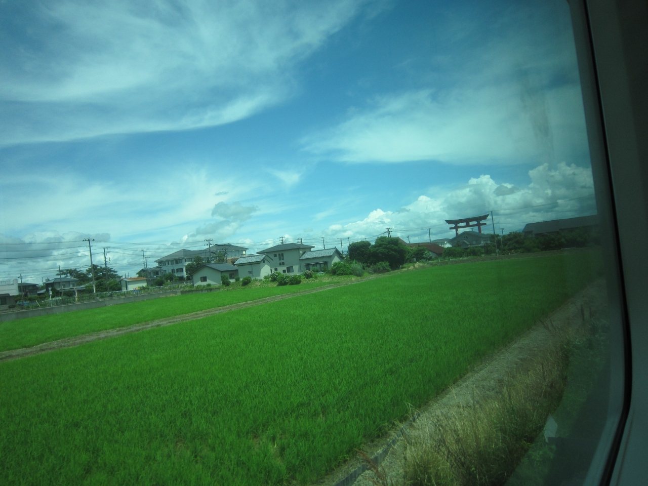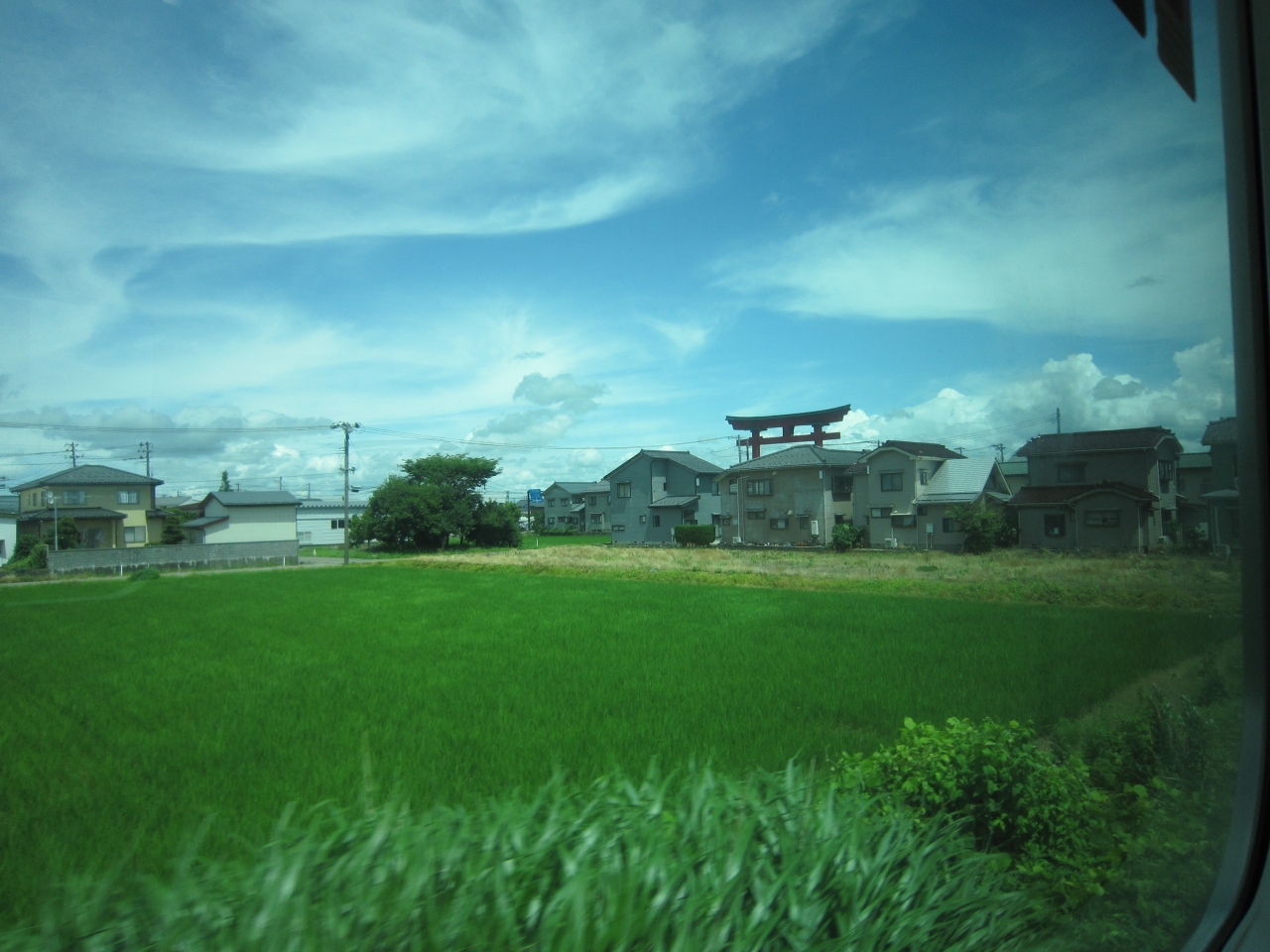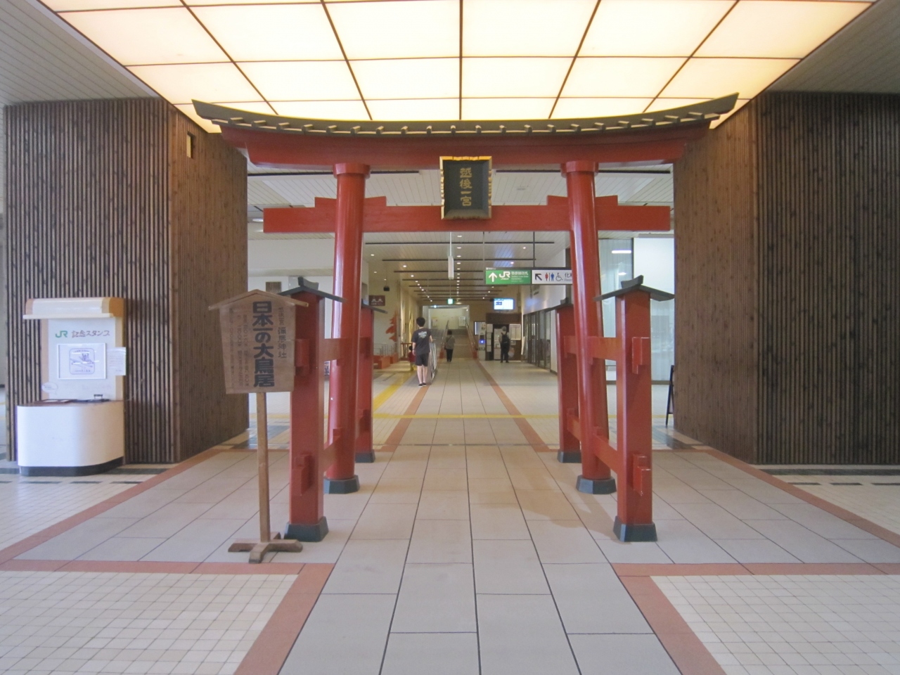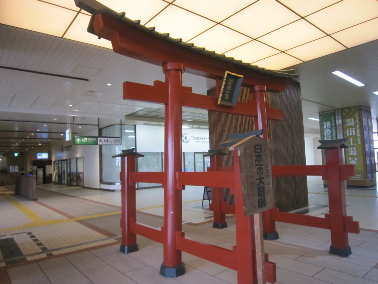 弥彦神社の一の鳥居が弥彦大鳥居のモデルになったそうです。電車で行ったため大鳥居の近くには行けませんので電車の中から見ました。弥彦線矢作駅の近く、行きの弥彦方面ではただ見ただけで帰りに電車から大鳥居を撮ろう思いましたが、矢作駅を出て直ぐにスピードが出て上手く撮ることが出来ませんでした。ただ、大きな鳥居であることは分かりました。この鳥居のミニチュアが上越新幹線燕三条駅にもありました。鳥居をくぐった先が弥彦線の入口でした。それで弥彦神社の一の鳥居、矢作駅近くの大鳥居、燕三条駅の大鳥居ミニチュアを見ることが出来ました。