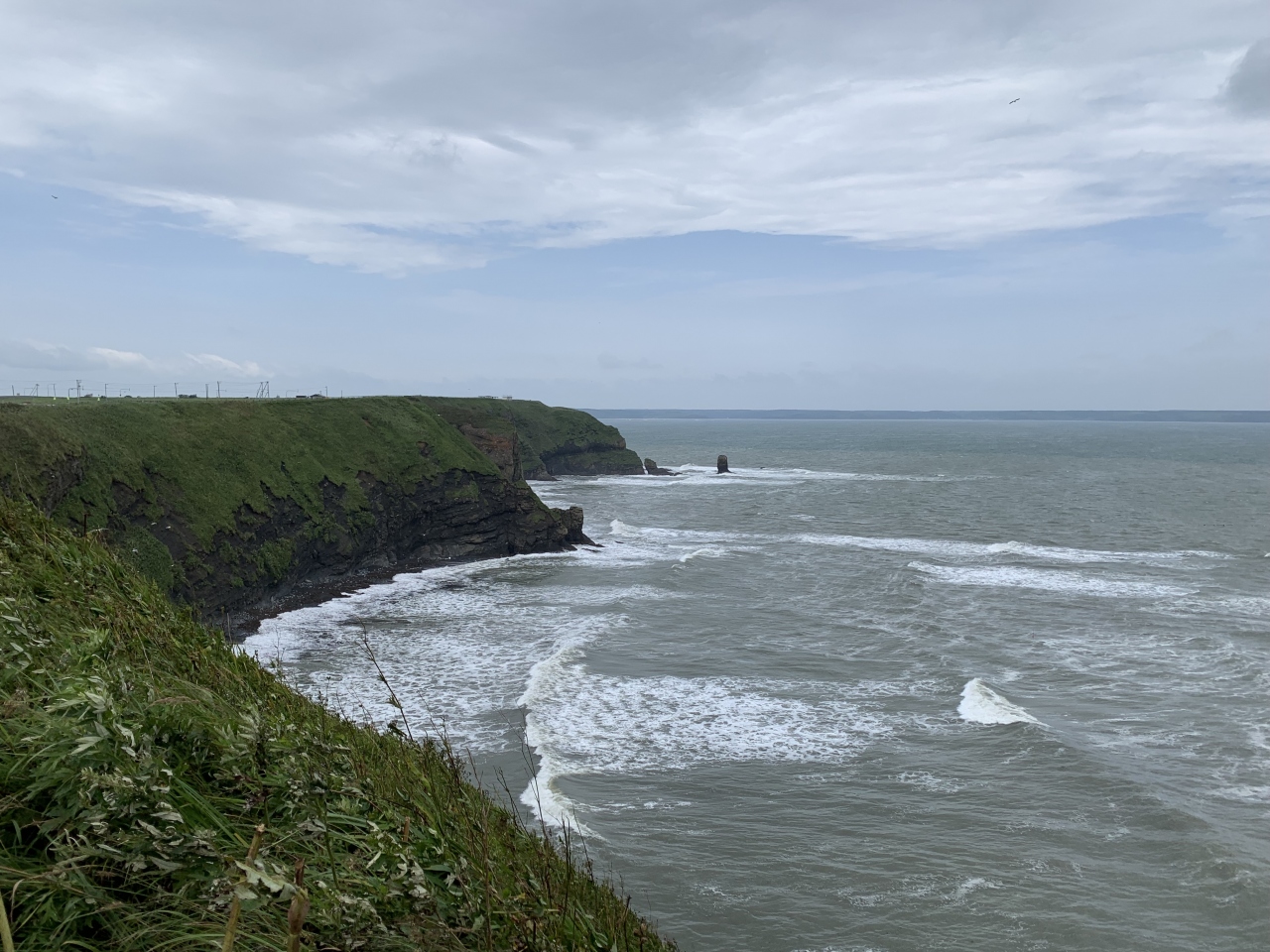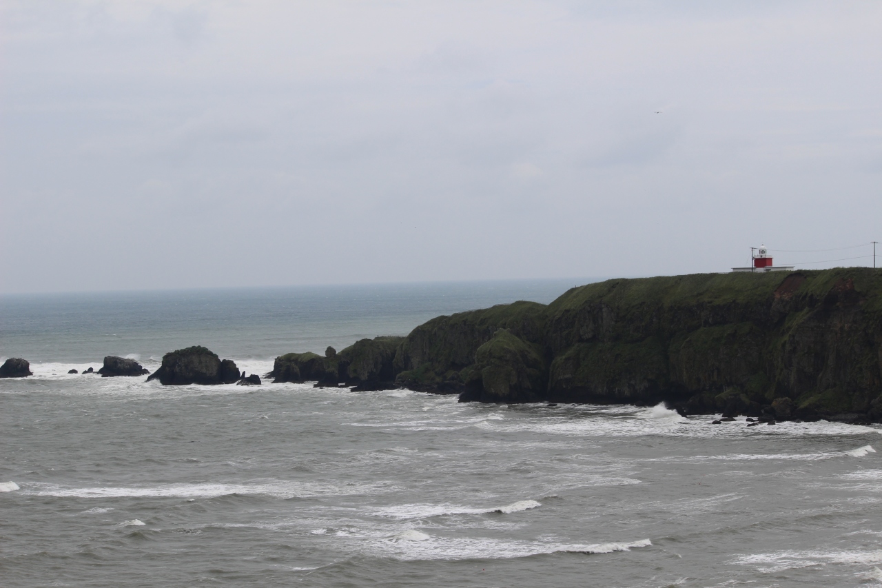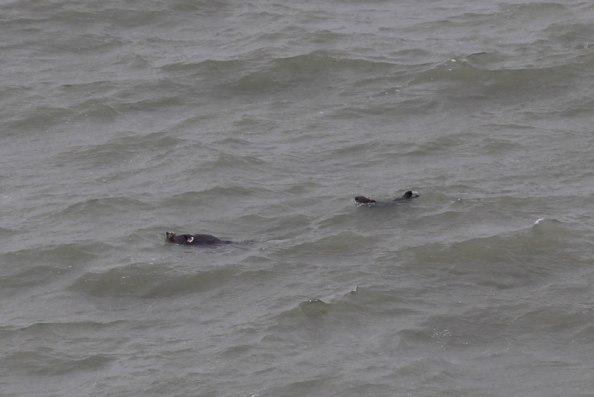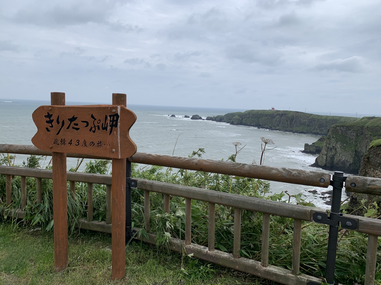 霧多布岬展望台の駐車場。看板には「厚岸道立自然公園」とありますが、令和3年(2021年)3月に「厚岸霧多布昆布森国定公園」になりました。霧多布岬展望台(低いけど)。展望台からは岬の突端の景色を見渡せます。崖下を覗くとラッコです。つがいでしょうか、2匹仲良く浮いているのを見ることができました。この辺一帯の岬は正式には「湯沸(とうふつ)岬」といいます。ですが、”ゆわかし岬”と読まれてしまうため、通称の「霧多布岬」を前面に出しているそうです。なお、この岬のもう一つの通称は「トッカリ岬」。トッカリとはアイヌ語でアザラシのことです。この日はアザラシには出会えませんでした。ラッコとアザラシに気をとられがちですが、岬としての景色も良いです。晴れてればもっと素晴らしいのでしょうが。キャンプ場もありました。