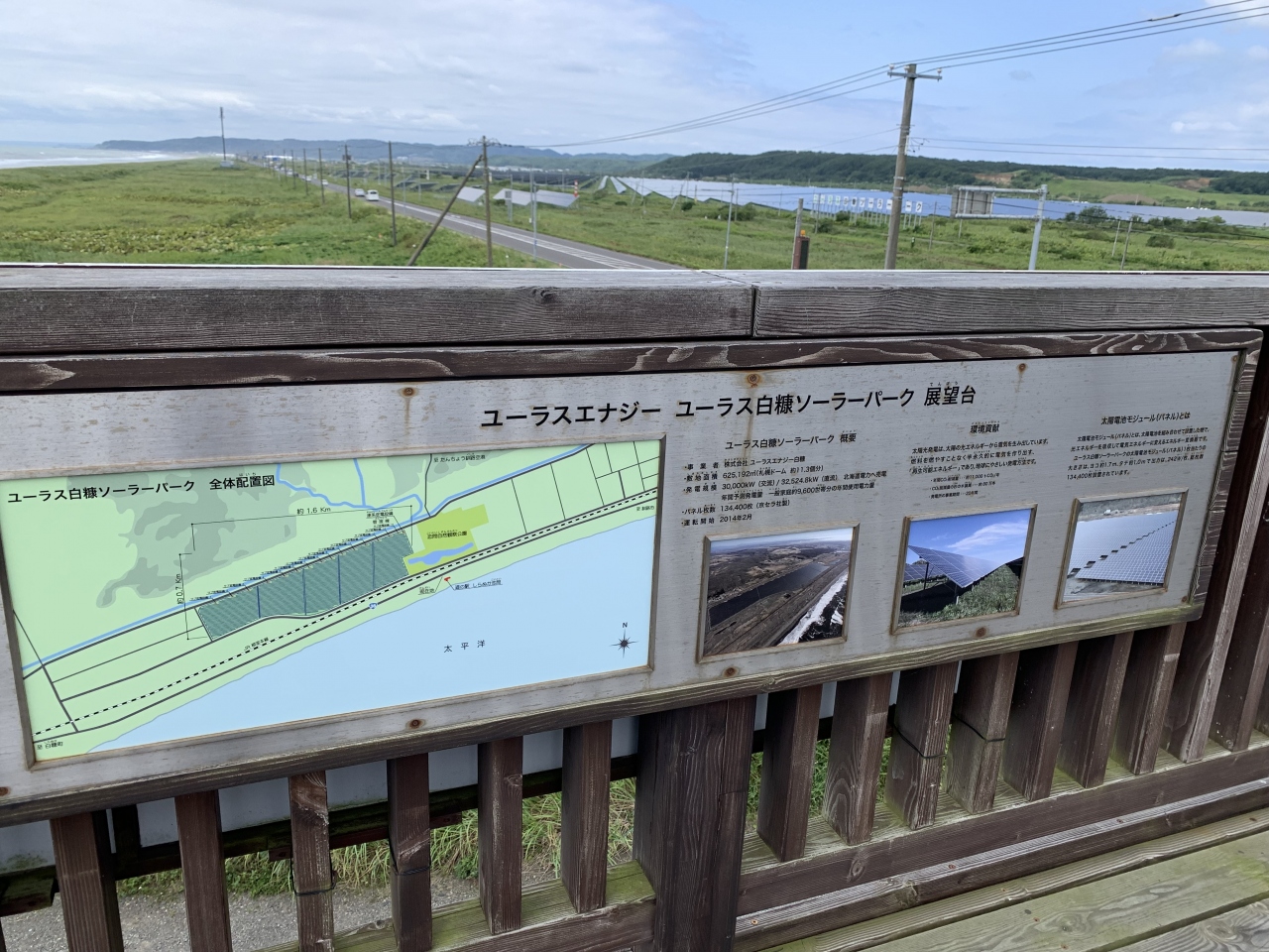 釧路市の西隣、白糠町の海沿いにある道の駅です。「ユーラス白糠ソーラーパーク」と書いてある展望台に上ってみると、西側に太陽光発電所の大きなソーラーパネル群が見渡せます。東側にはバイオマス発電所。南側は海。恋問だけに”恋が叶うポスト”いうものがあります。ゆるキャラ”コイタくん”と”メイカちゃん”が描かれたポストです。生簀もあり、海の幸・乳製品・陸の幸など豊富でした。