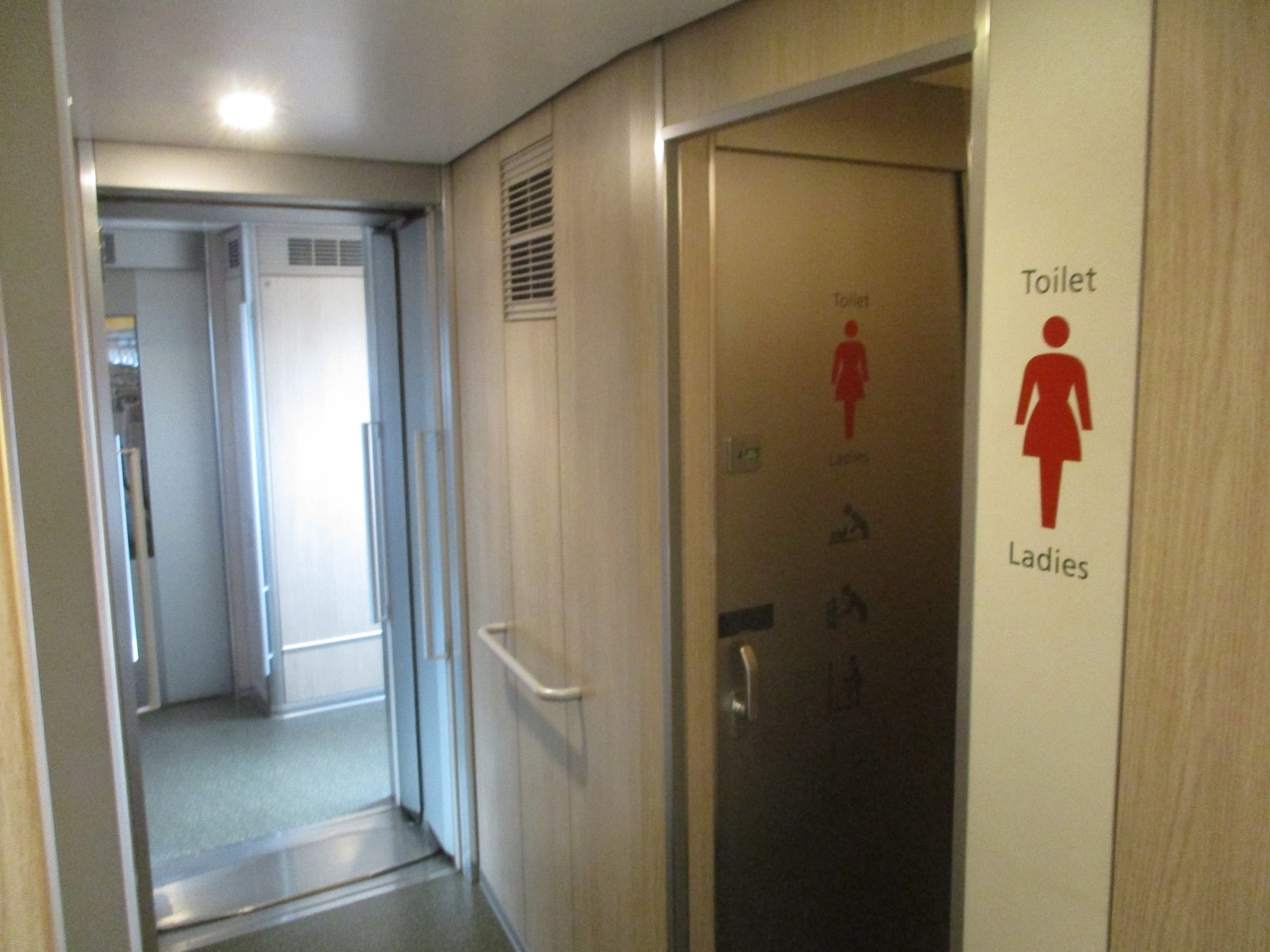 東北新幹線の車内設備としては、車椅子対応の大型トイレがありました。また、女性専用のトイレと洗面所があるのは目新しいと思います。東海道新幹線より分かりやすく、特別な個室であるかのように感じました。その一方で、カード式公衆電話が3号車に残っているのは意外でした。