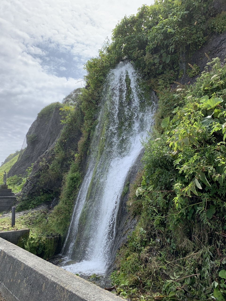 小さいけれど水量豊かな(一年中絶えないらしい)涼しげな滝