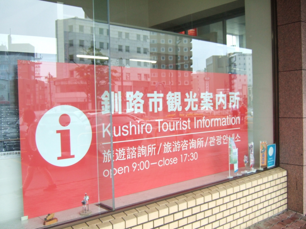 釧路駅の改札口を出ると、駅出口手前の右側にある観光案内所。
