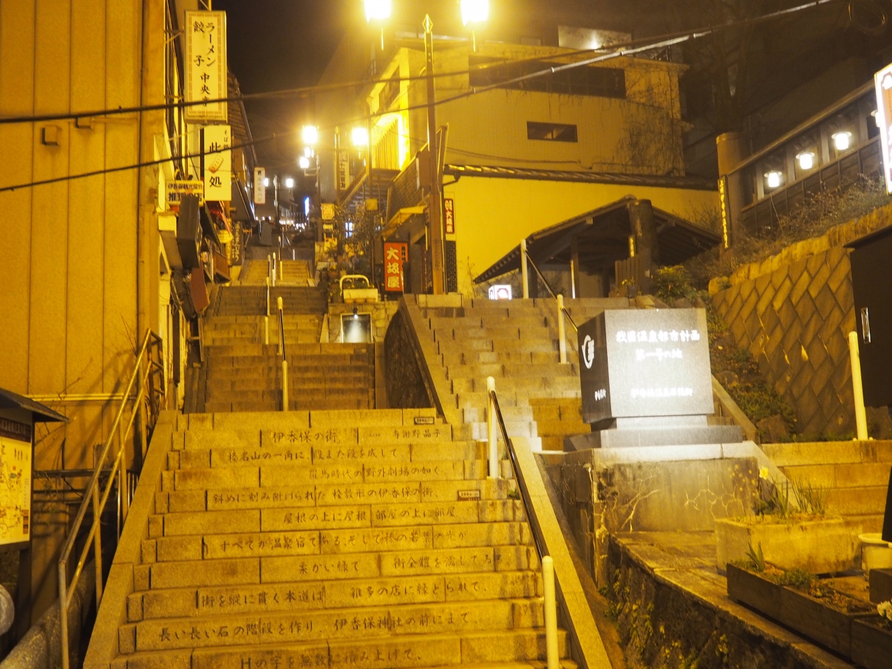伊香保温泉は1000年以上の歴史ある温泉場で、戦国武将も訪れたという人気の温泉場であったようです。現在も365段の石段があり、その両側に温泉街があるという絵になる観光地であり、温泉地です。温泉の泉質は鉄分多い褐色の湯で、別名色合いから黄金の湯と呼ばれる湯が特色です。温泉の元湯は石段の上の伊香保神社から1キロほど山奥に湧出場所があります。宿泊すると石段街の店が夕方早くに締まるとか、夕方以降に石段に人通りがないのは寂しいです。