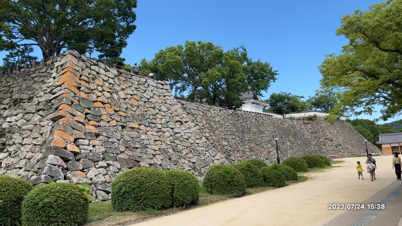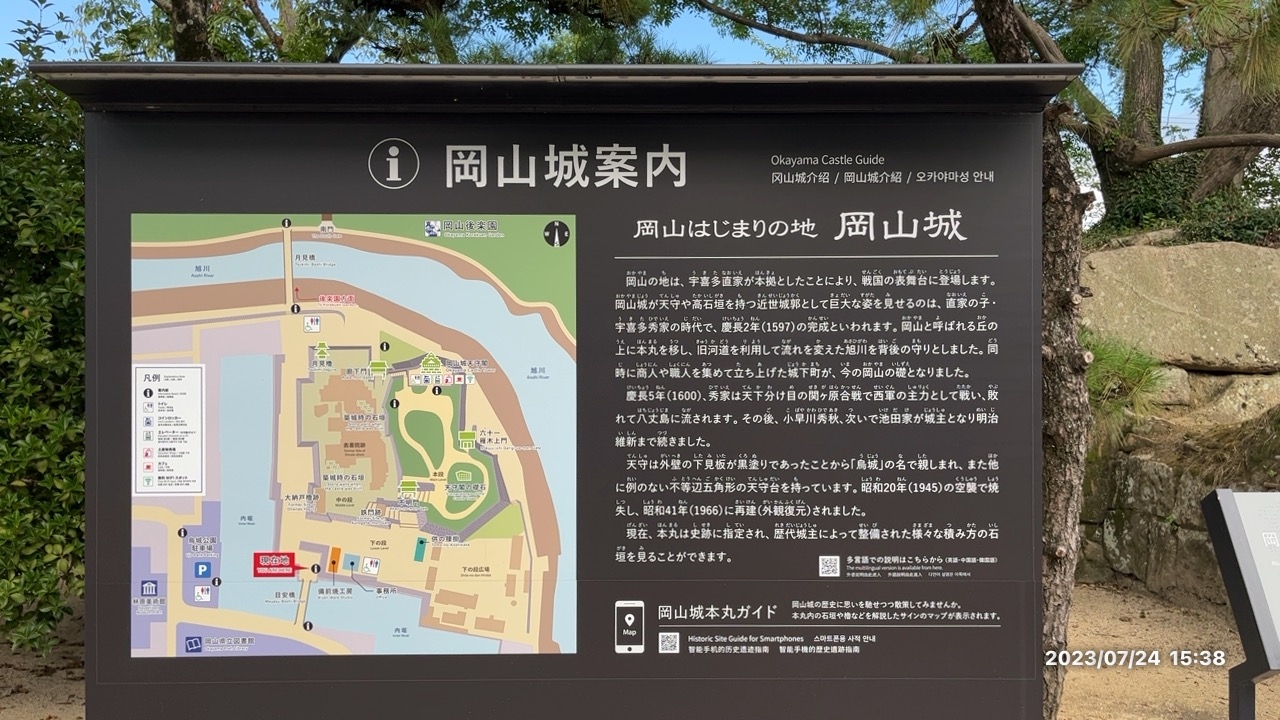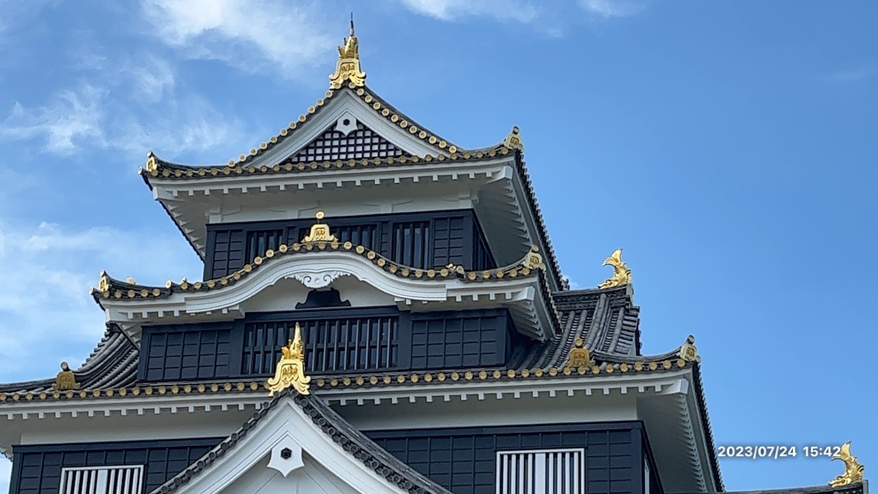 日本100名城の岡山城に訪問してきました。私の見学ルートからは城が外から見えませんでした。敷地内に入り地下ずくとドーンと城が構えていると感じました。入口にはやたらと大きな石が使われています。鏡石と言い権力の大きさを象徴するようです。烏城(カラス)と呼ばれるだけあった真っ黒な外観です。外壁が黒塗りの下見板で覆われているためとの事です