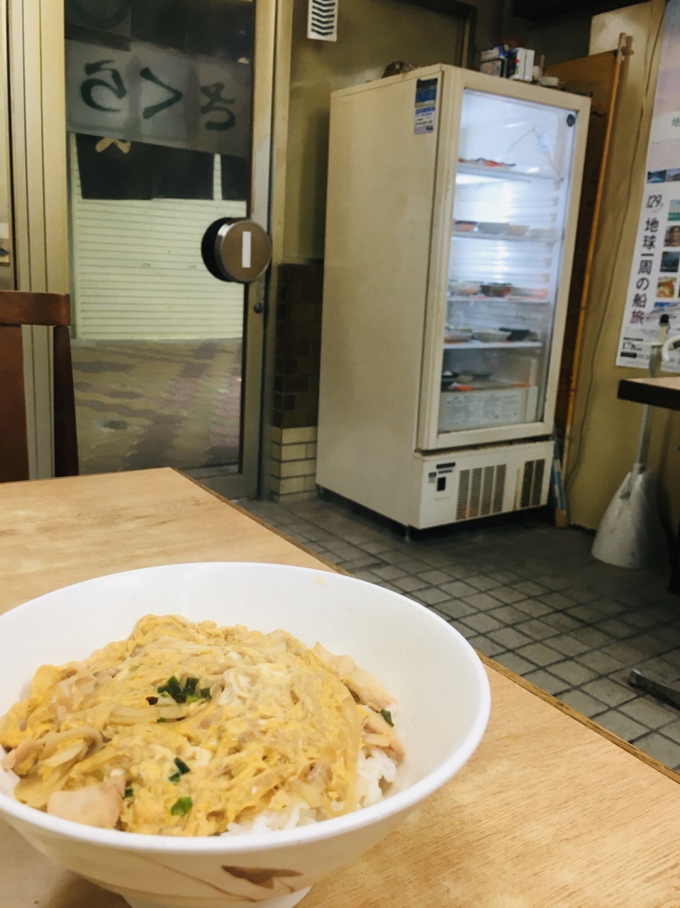 たばこ屋も兼ねているので、たばこのみ買いに来る人もいました。店内に冷蔵庫があり、小鉢類が置いてあり一杯飲むのには良いです。親子丼を食べました。沢庵付きで,見た目は鄙びたような感じでしたが、味は家庭的で汁が旨かったです。