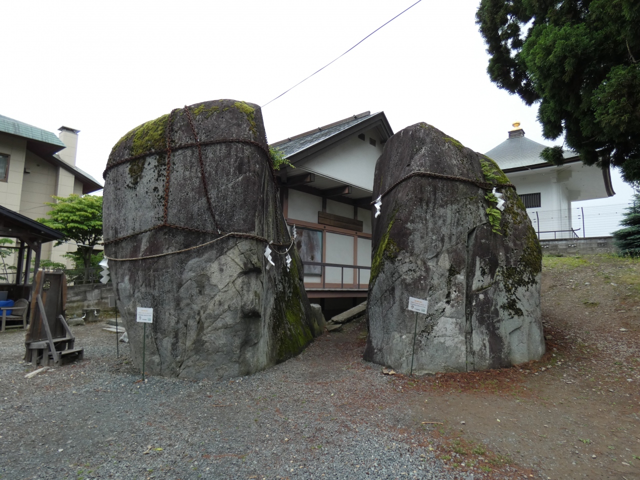 盛岡の寺町・名須川町の曹洞宗寺院・東顕寺の裏手に鎮座する神社。境内には注連縄が張られた三つの巨大な花崗岩が立ち並ぶ三ツ石神社です。その石に鬼の手形伝説があることから岩手の名の起こりとされています。岩手山の噴火で落ちてきたとされ「三ツ石様」と呼ばれ信仰を集めています。「さんさ踊り」発祥伝説の地でもあります。