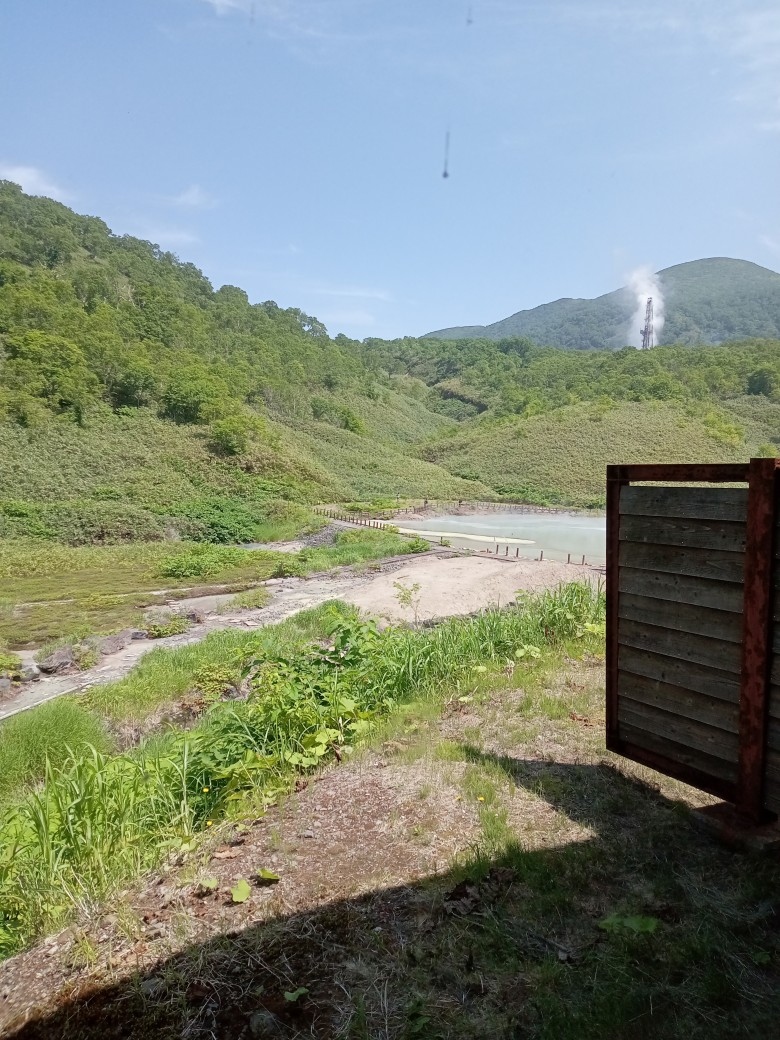 大湯沼の隣にある日帰り温泉施設です。源泉は、大湯沼から引き揚げているということで、大湯沼のお湯を実際に体感できます。硫黄のにおいがすごくするので、硫黄泉だと思います。硫化水素が充満しないように内風呂は窓が開いています。おすすめは、温泉にたまる泥での泥パックです。肌がすべすべになりますが、硫黄分が強いので顔にはぬれないそうです。大自然に囲まれて入浴できるのがよかったです。