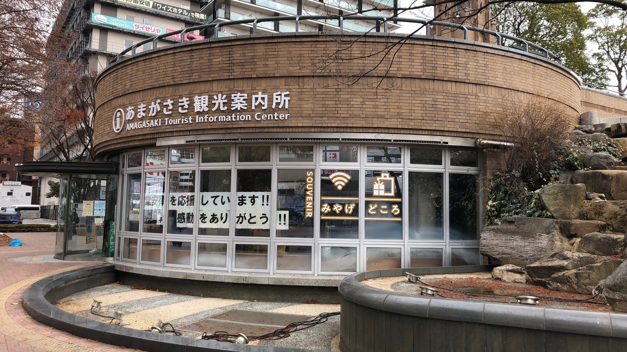 阪神尼崎駅前の、尼崎中央公園にある観光案内所です。有人カウンターがあります。また、観光パンフレットコーナーもあります。尼崎エリアは、近年、尼崎城や歴史博物館が誕生し、注目の観光スポットになってきています。