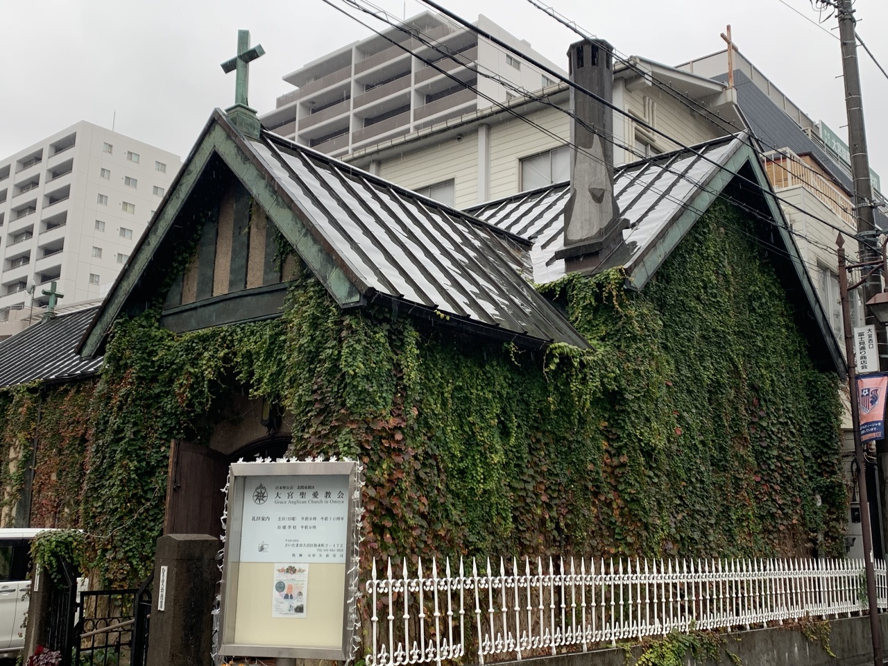 その建物はツタに覆われていて、歴史を感じさせてくれます。