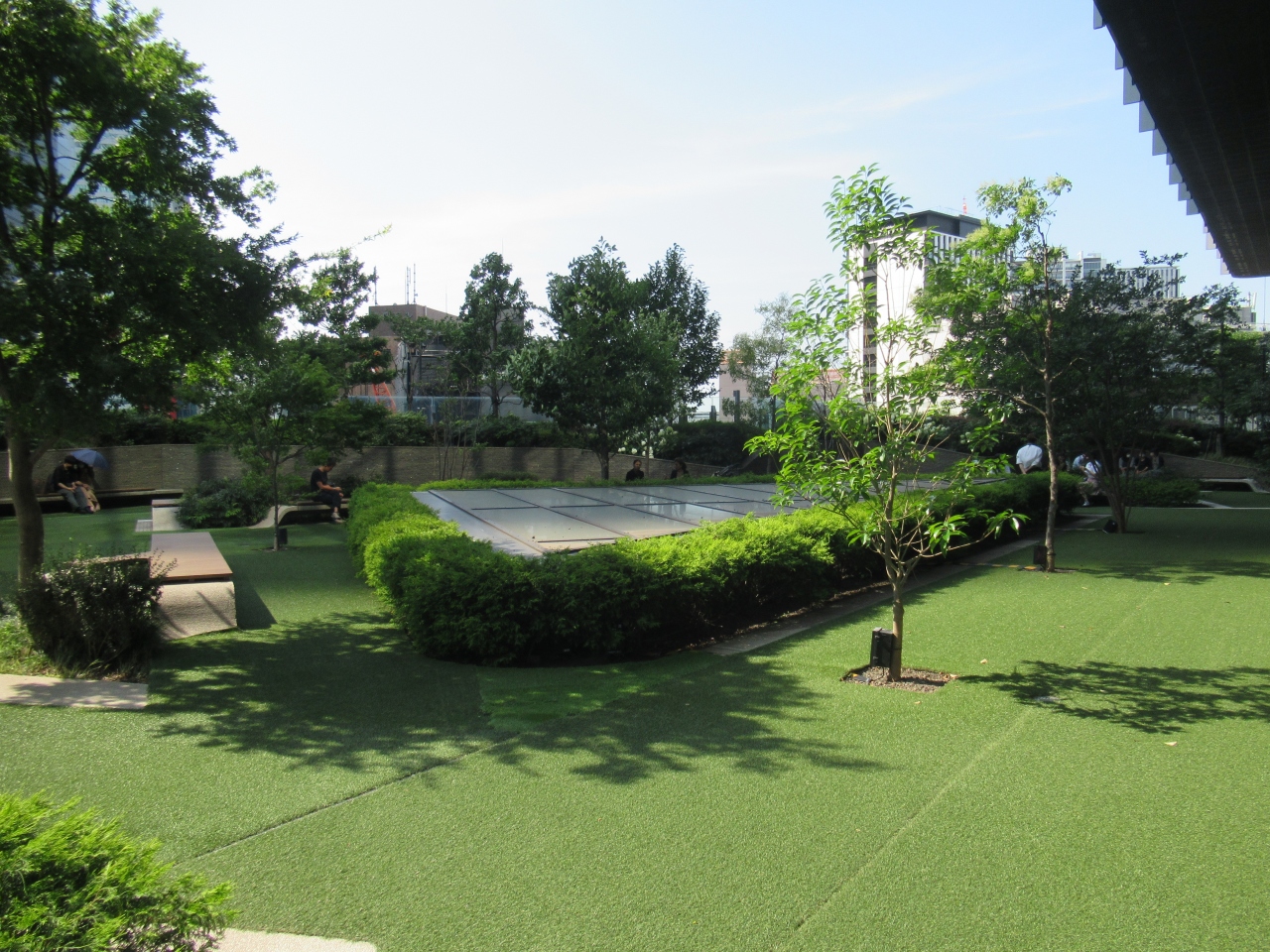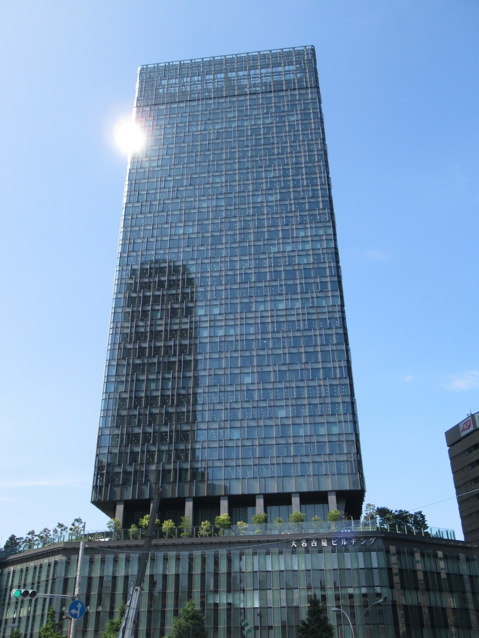 名古屋駅の東側の名古屋駅交差点に面しています。5階までの建物の上に33階までのオフィスビルが乗っているような印象のビルです。ファッションや装飾品店とレストランが地下1階から5階まで入っています。特徴はゴルフ専門店とゴルフファッション店が入っていることです。5階に人工芝のスカイガーデンがあり、木々が植えられていて、ベンチが多く設置されています。訪れた時、休憩している人や学校帰りの学生たちがいました。白いアジサイが咲いていました。3階のひつまぶし備長で美味しい鰻を食べました。