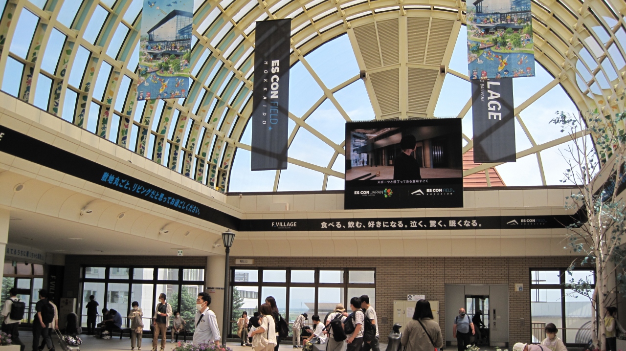 改札を出ると想像以上に広い空間ありました。コンビニでは応援グッズも売られていました。試合開始3時間前で混雑なし、あちこちに案内係が居て、どこに進むか振り分けてくれました。