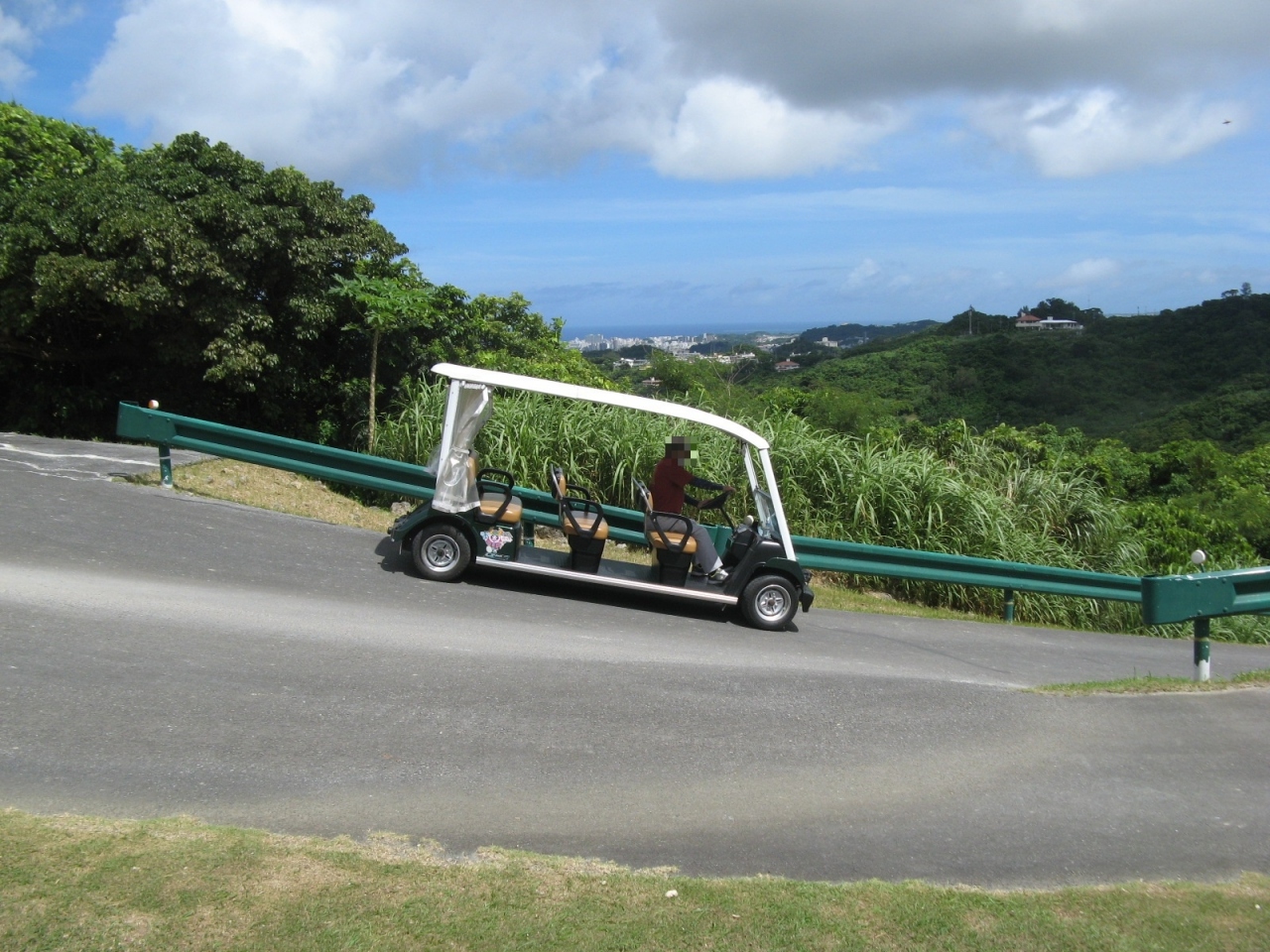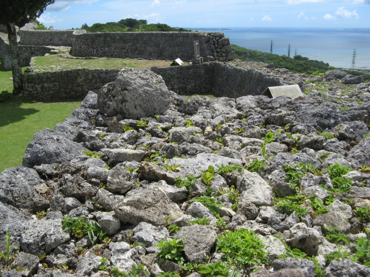 マンホールカードを頂いた後、城内を観て回りました。入口で入場料400円を払うと、電気自動車のカートでグスクの入口まで連れて行ってくれました。乗車時間はわずかですが暑い日だったので助かりました。グスクは丘陵地の形を利用して琉球石灰岩を積んだ曲線の城壁は素晴らしく、訪れた時は天気が良く城跡からは中城湾や勝連半島などを見渡すことができてとても良かったです。