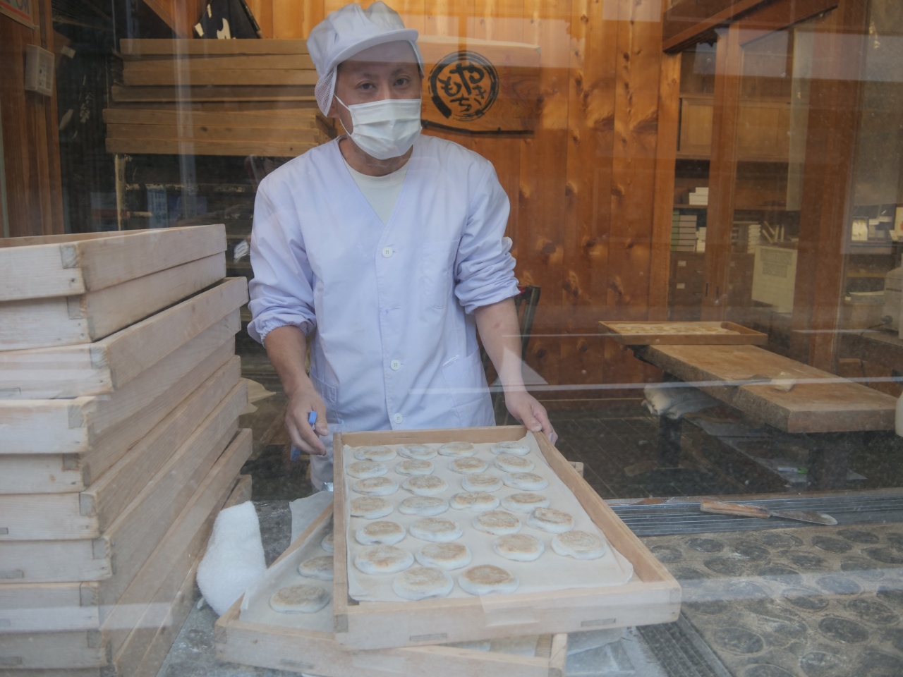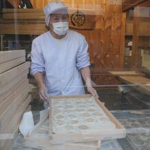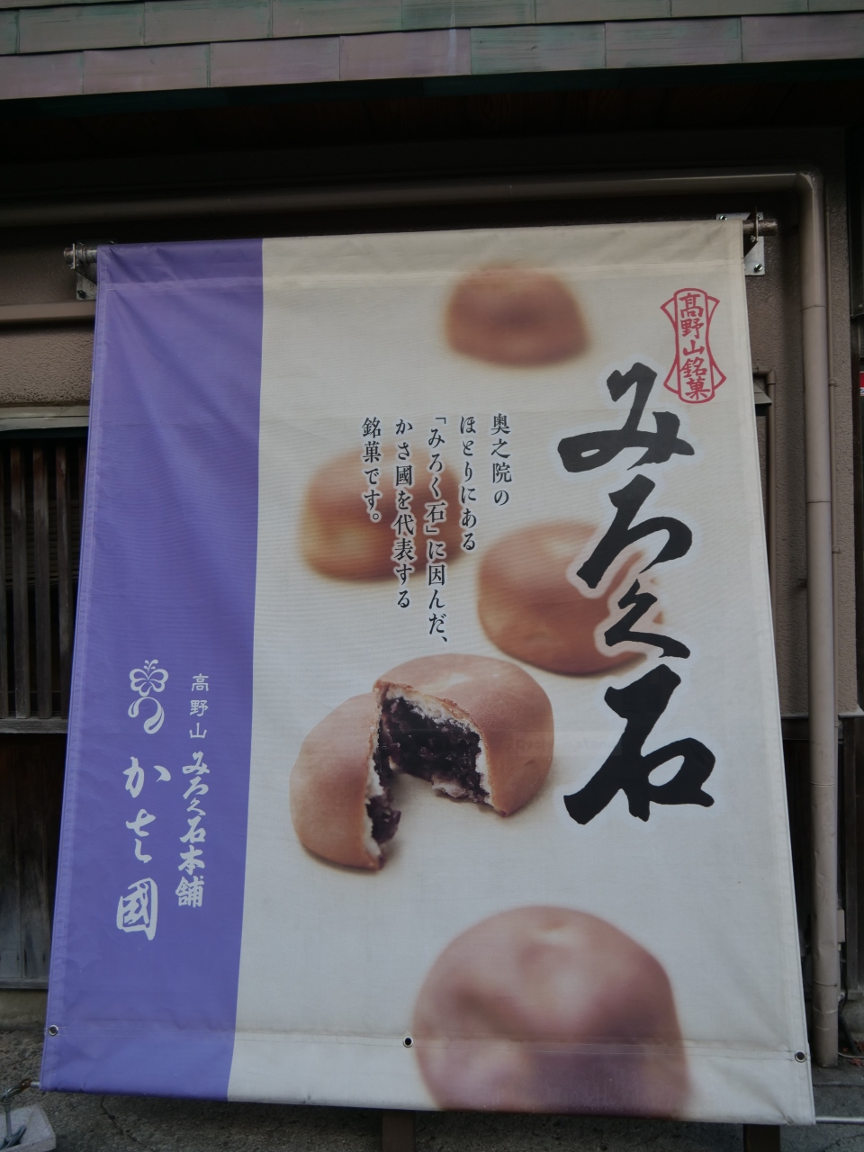 奥の院のみろく石伝説から生まれたおみやげです。宿泊先の西門院の入り口に店舗があります。早朝から御菓子作りの作業をしており、快く写真撮影させてくれました。甘さ控えめの粒あんがたっぷり入ったみろく石は、伝説とともにおみやげとして持ち帰れば、御利益がたっぷりかも?