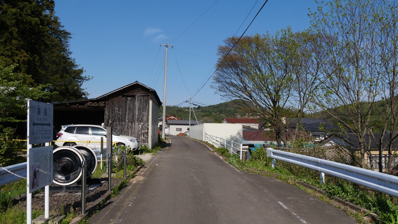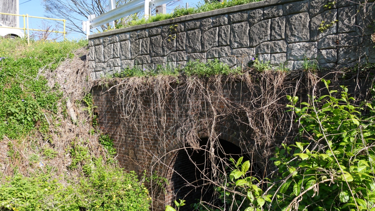 集落の中の小道はもともとは東北本線の線路があったところで、鉄道レンガ橋が残っていました。