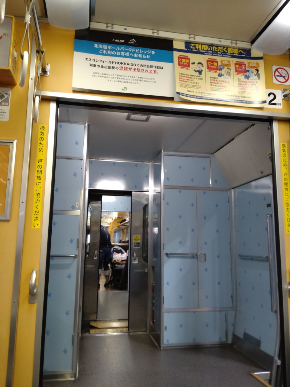 空港と札幌駅間の連絡は快速エアポートが便利です。万が一、座れなくとも時間も短いので苦になりません。傾向としては、空港からは後方、札幌からは前方が席も確保し易いです。最近は日ハムの球場も出来たので、試合開催日は混雑する時間あるかもしれません。