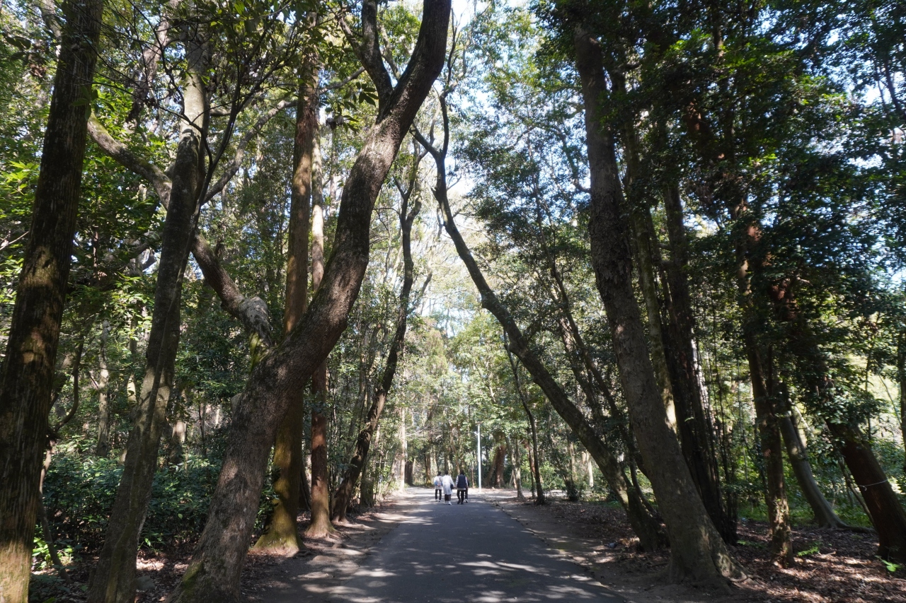 宮崎神宮庭園は、神社によくある神苑とかよく手入れされた日本庭園風の庭を想像していましたが、むしろ手付かずの原生林っぽい場所。南国の宮崎は、かつてはこういう風景があちこちにあったのかなあという感じですね。見上げる木々の高さも素晴らしいです。