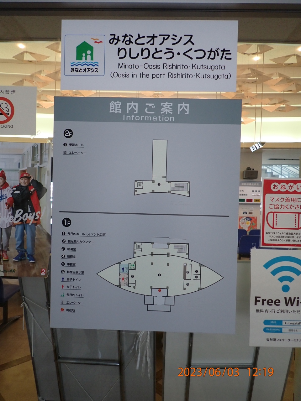 利尻島観光で利用しました。沓形港フェリーターミナルは、コンパクトなフェリーターミナルと言うだけでなく、営業時間も昼間のわずかな時間だけで、びっくりしました。営業しているのは、ハートランドフェリーの夏場(6/1~9/30)の昼間の礼文島との1便の往復のみで、それ以外の時間は閉鎖されていました。従って、昼間は開いていると思ってロッカーに荷物を預けたりすると大変なことになることに現地で初めて気づきました。