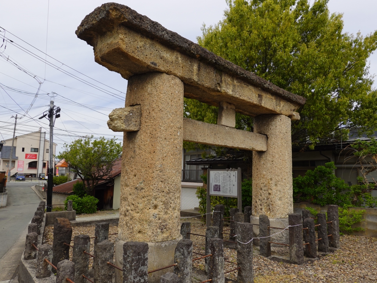 この鳥居の周辺は住宅街で、鳥居以外には小さな社があるのみ、鳥居だけが目立っているのも興味深いです。