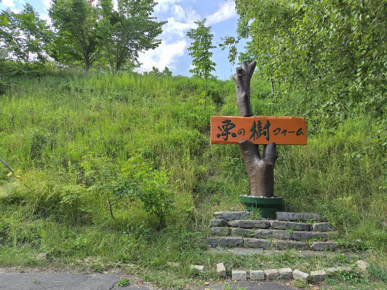 道の駅安平から向かいました。栗山町に入り、国道からは右折しますが、看板等目印になるものはありません。グーグルマップで示されたところを右折し、丘を登っていくと、小さな看板があり、そこが栗の樹ファームの入口になります。行ったときは、コロナ禍で入れませんでした。
