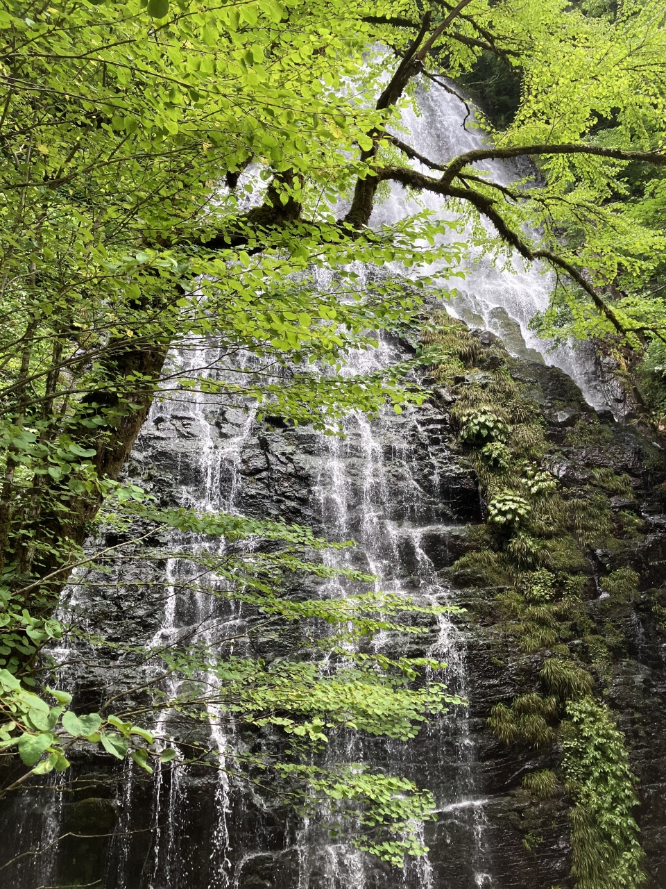 日本の滝100選にも選ばれています。滝までの道は細く、滝がある場所の駐車場も狭いので、運転は注意が必要です。滝はかなり近くでみることができ、高低差があり、滝の流れも2つに分かれていて、迫力があります。もっと間近までいきたい人は階段を下りれば滝に近づくことができますが、足元が濡れてしまうような感じの場所なので、注意が必要です。