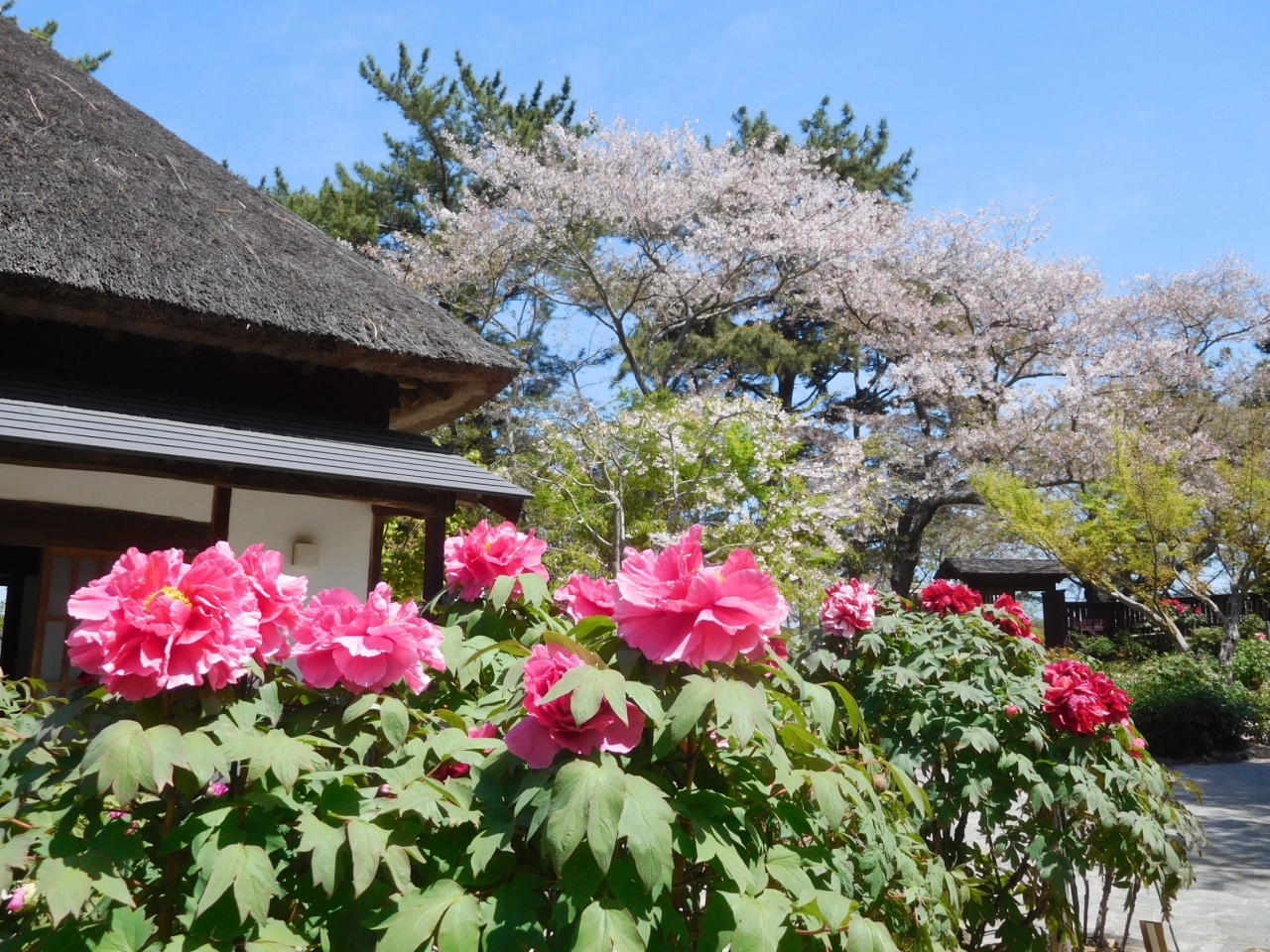 湖1周。4月上旬でも花の開花が早かったので八重桜、御衣黄、シャクナゲ、牡丹が見られました。