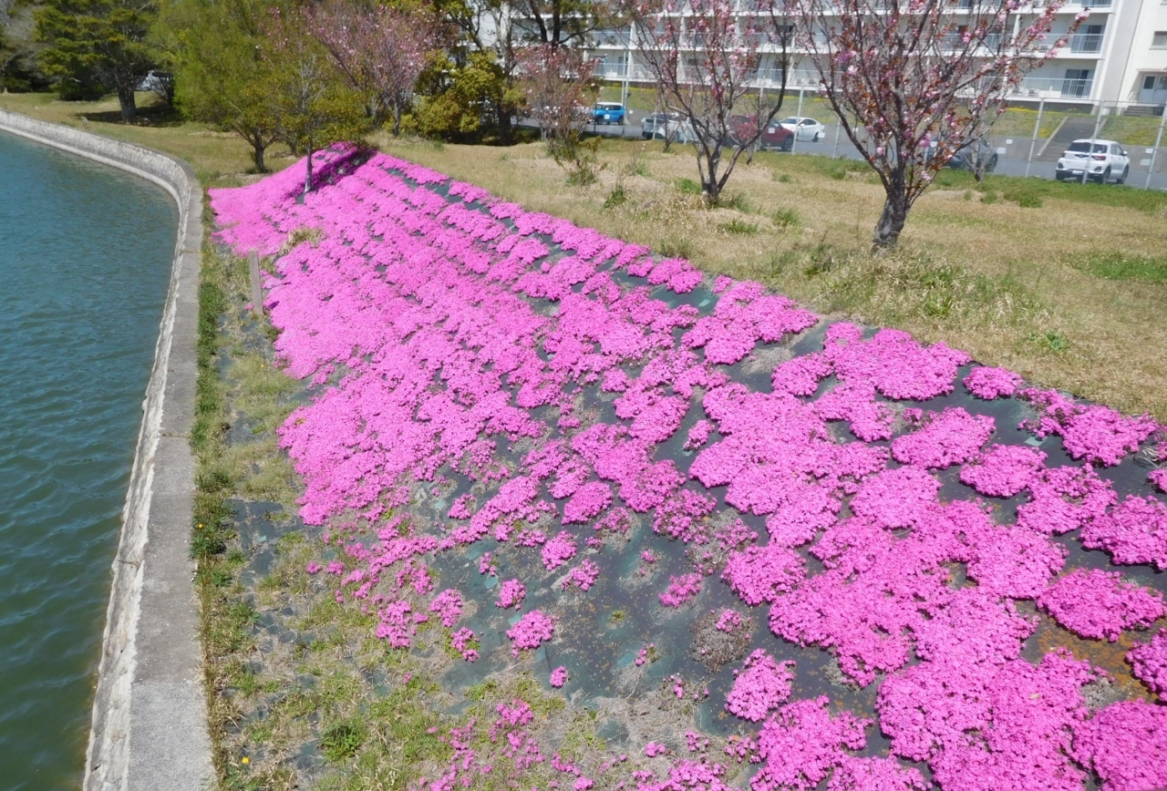 湖沿いを歩くと、道のそばに八重桜、ドウダンツツジなどが咲いていました。