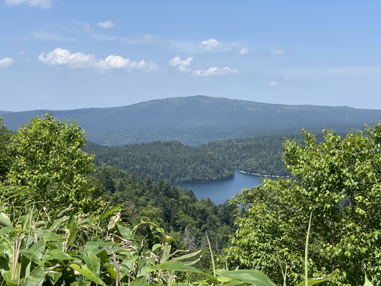 湖を見るためには駐車場から登っていく必要があるのですが、かなり無理しないと遠い方の湖は見えないばかりか肝心の方角脇が伸びていて視界を邪魔しています。