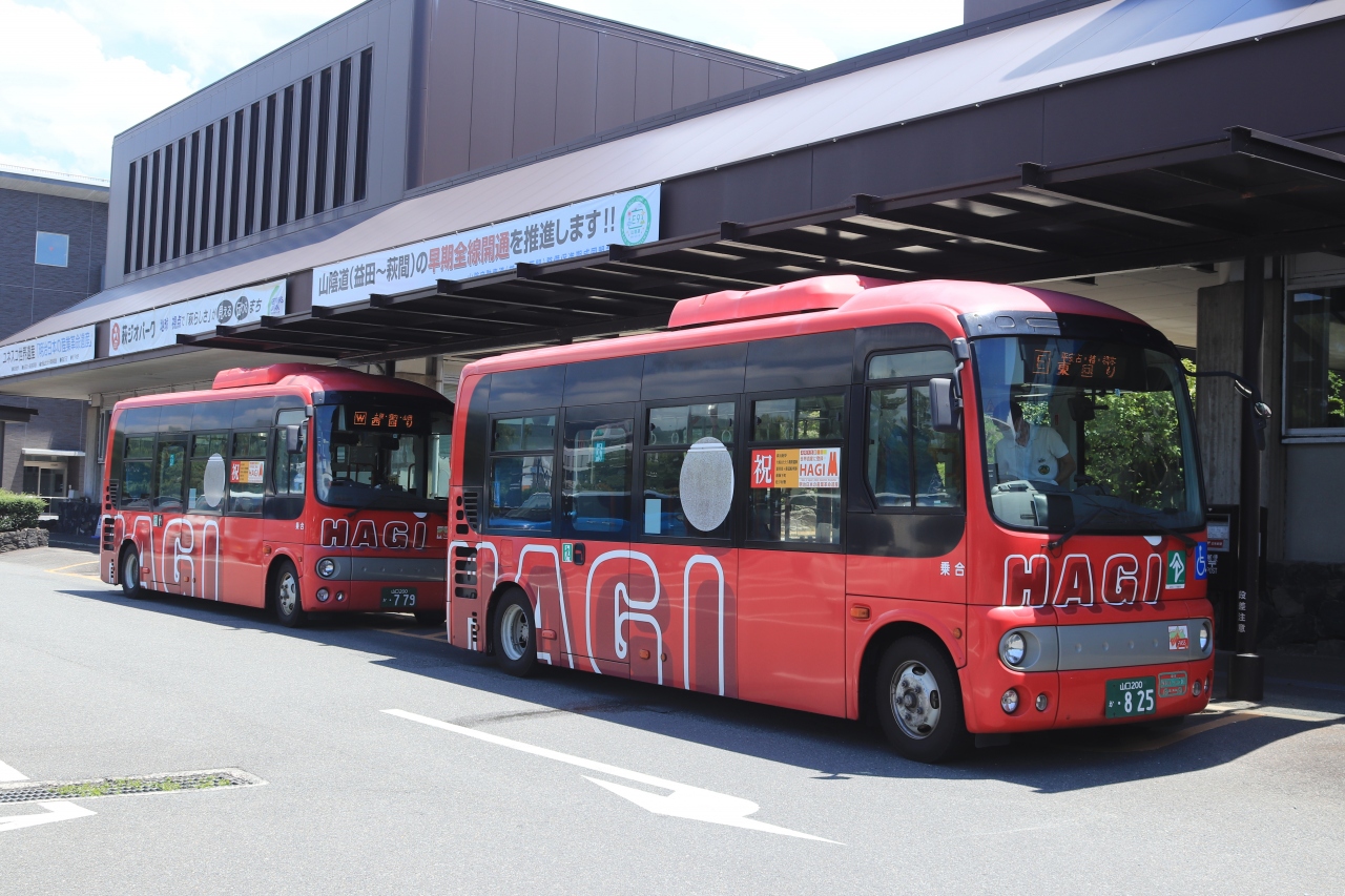 萩市内観光に便利な循環バスです。萩市役所を起点にふたつのルートがありますが、一部バス停は重複しており、のりかえも可能です。回数を乗るなら、フリーきっぷが便利です。観光客のほか、地元のお年寄りの利用も目立ちました。