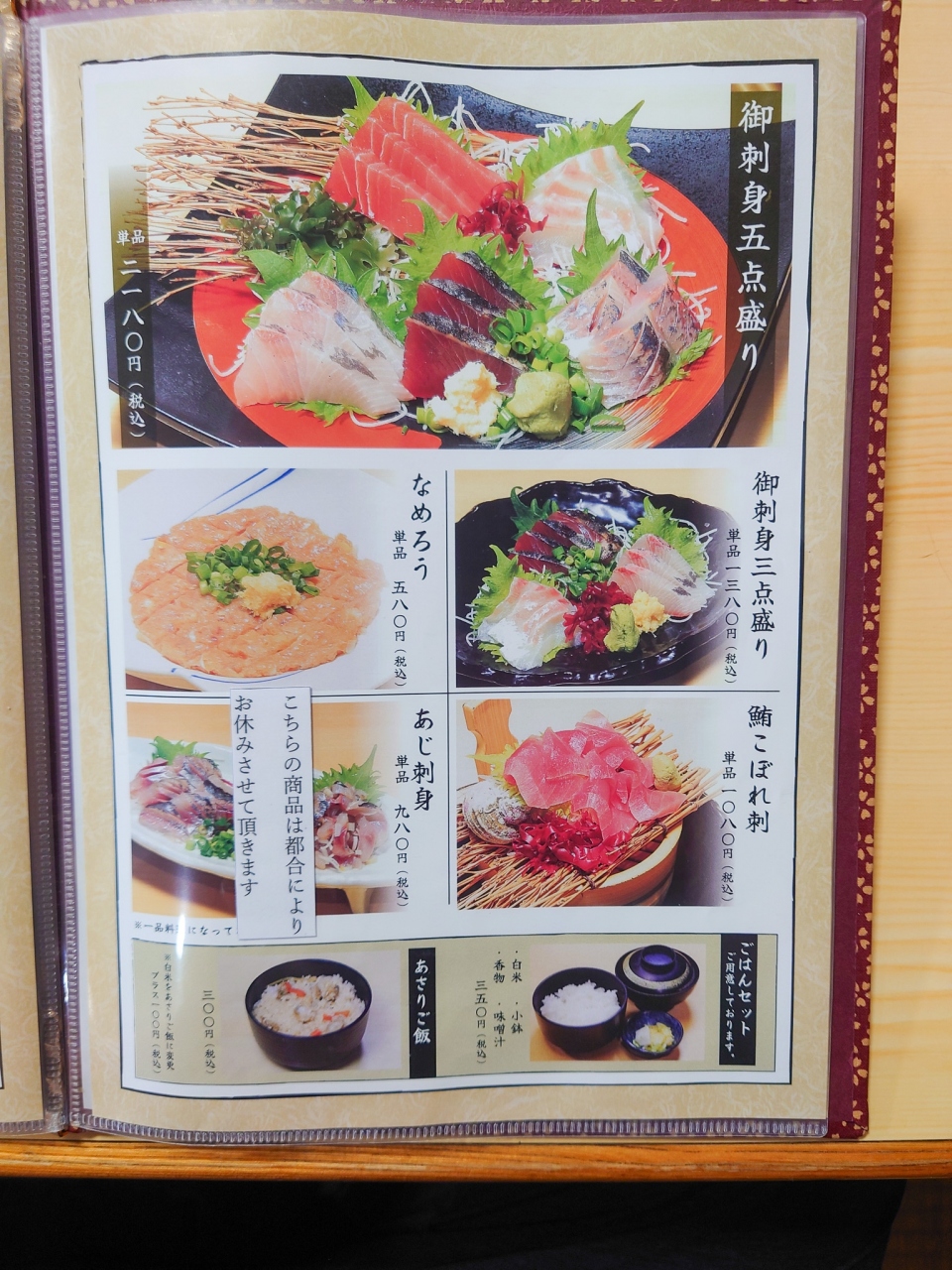暑い夏、避暑に房総半島へ。のんびり外房を散歩しましたが・・・勝浦~鴨川は上空を飛行機が飛んでいてそちらが気になりますね(笑) そして昼はやはり海鮮。事前に調べていた「藤よし」に行きました。店内はお座敷でとても広く、夏休みでも並ばずに入る事が出来ました。席に着き、メニューを見ると・・・金目鯛関連が多いですね。もちろん私は「海鮮丼1,880円」を注文。10分程度で運ばれてきました。マグロ、カツオ、サーモン、タコ、イカ、えびと中央にネギトロ。新鮮なお魚と多めのご飯、良いですね~ 房総で夏を満喫出来ました。