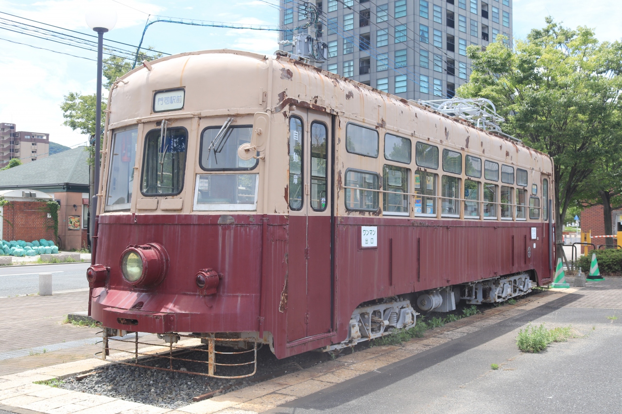 門司港レトロの駐車場に保存展示された西鉄の路面電車です。昭和初期につくられたもので1985年まで、かつての西鉄の北九州線を走っていた車両です。駐車場の隅にちょっと放置された感じで保存状態はよろしくありません。