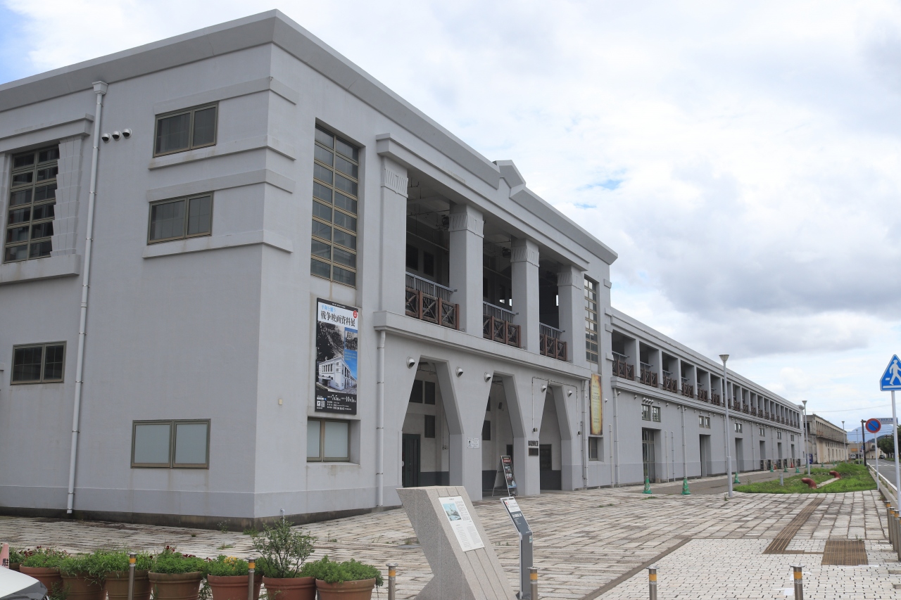 門司港駅から近い国際線旅客ターミナル跡です。大連航路がメインだったそうで大連上屋と呼ばれています。1階は簡単な資料館になっています。2階はアーチの回廊が続いていました。現在は埋め立てられているので、海は離れています。